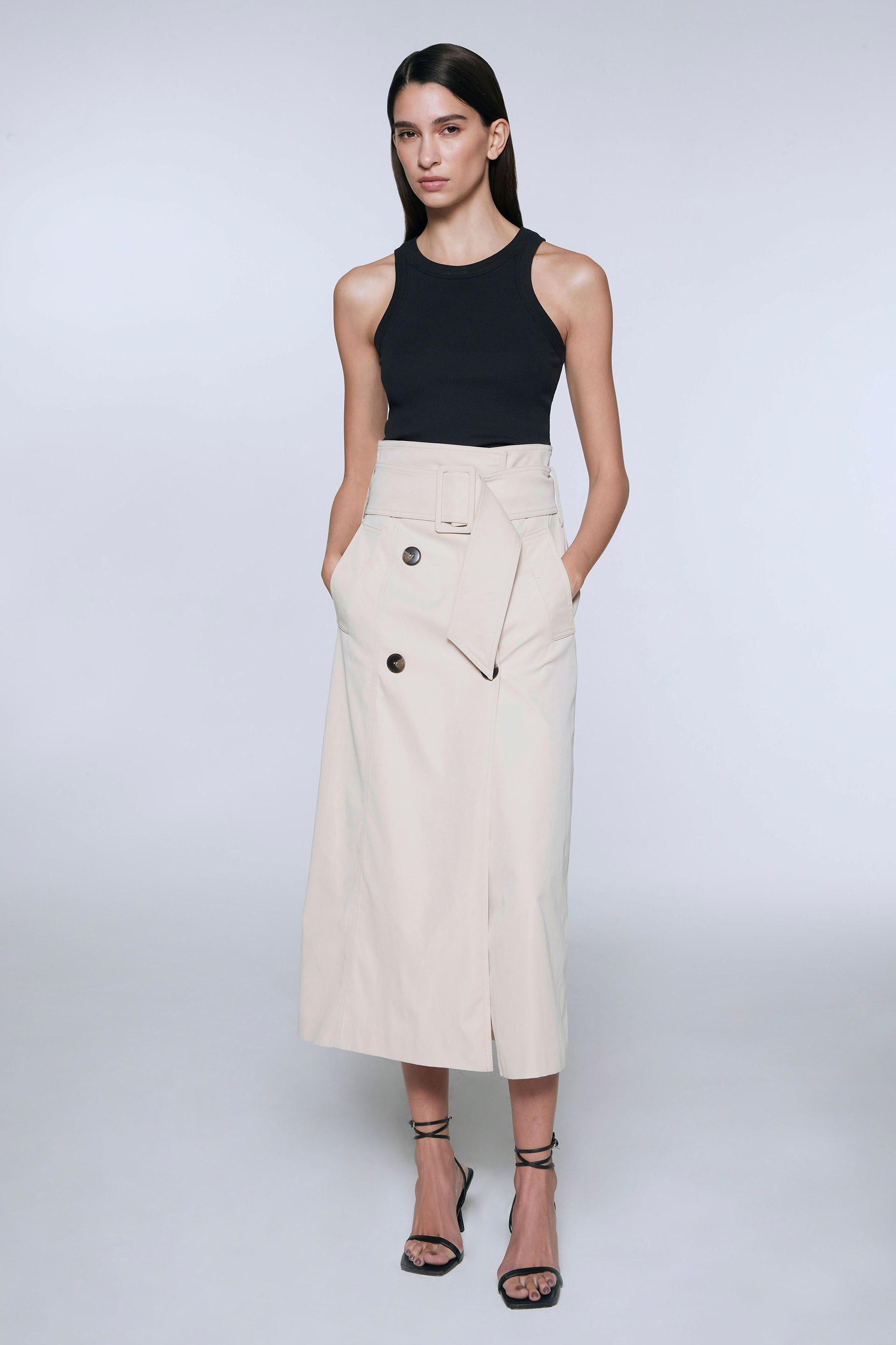 La modelo tiene contorno de busto 82 y usa talle 38.