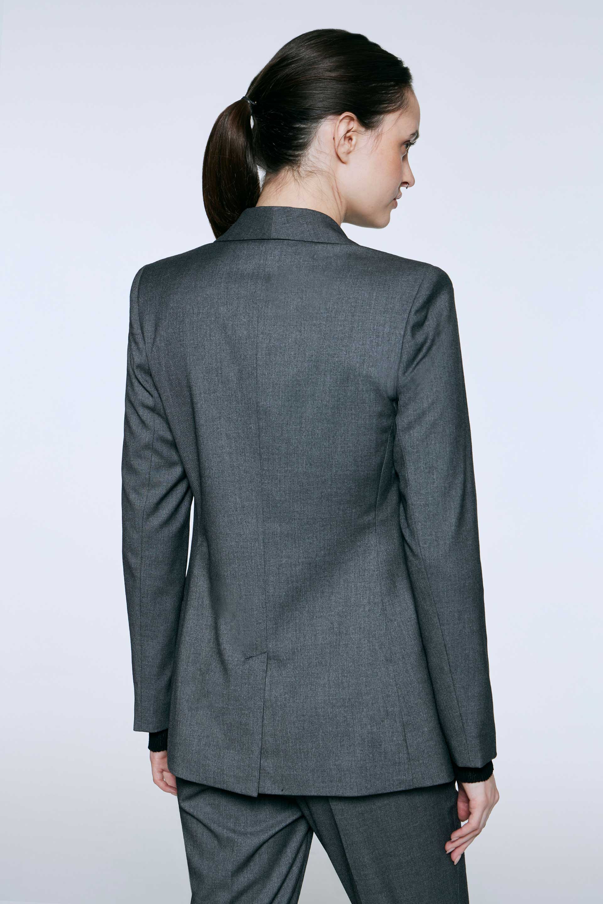 Blazer largo de sastrería rayón, de silueta relajada con solapa smoking y manga larga. Su interior está forrado en satén elastizado generando extra confort. Su largo a la cadera hacen de esta prenda un ítem súper moderno, facil de combinar tanto con jeans como con el pantalón Alain para completar un total look.