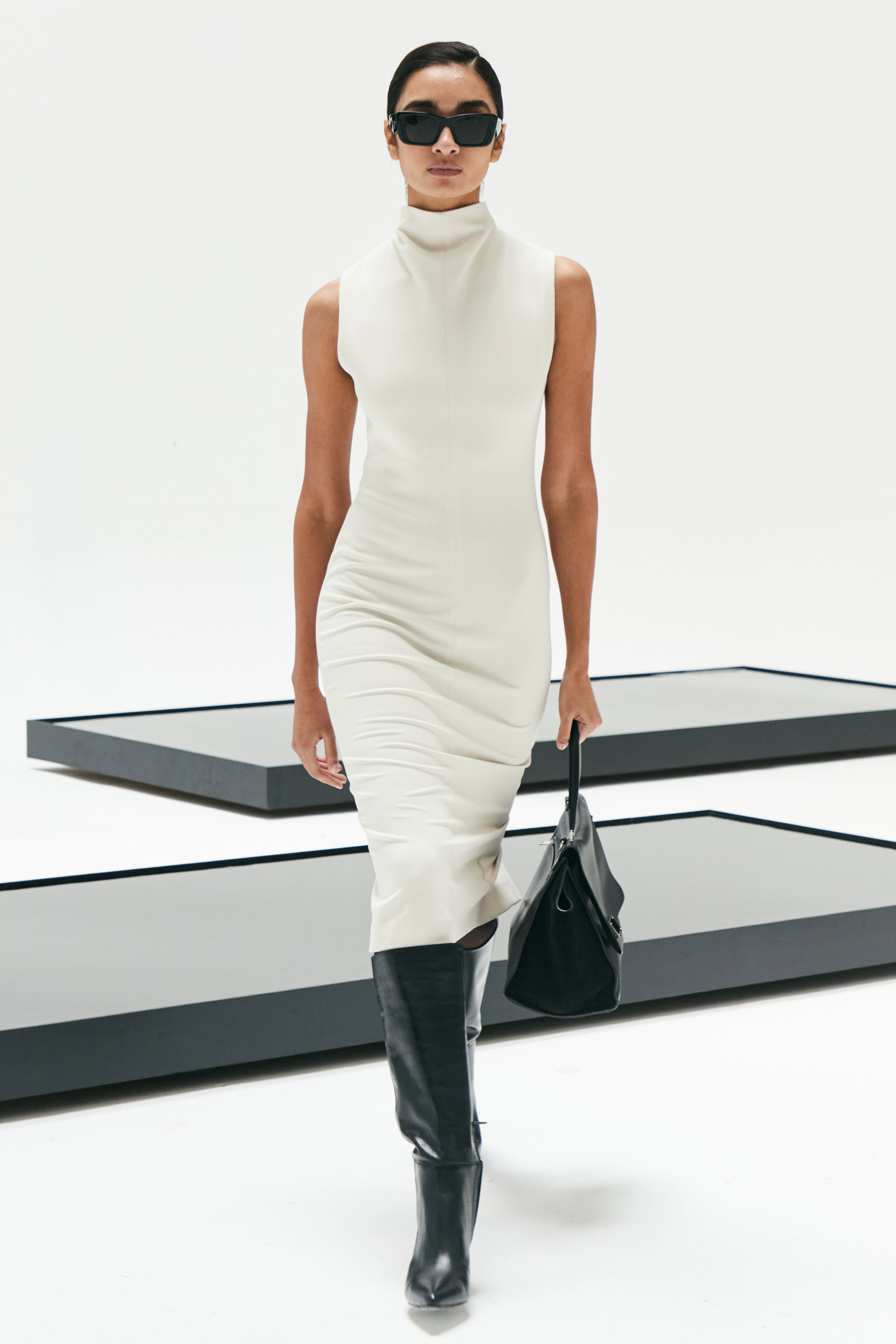Vestido de sastrería elastizada, de silueta tubo, sin mangas. Posee escote alto y acceso con cierre invisible. Su largo modular y su diseño sobrio y elegante lo convierten en una prenda clásica pero de tendencia que no puede faltar en tu guardarropas este invierno. Combinalo con las botas Jazz y armá un look canchero y elegante.