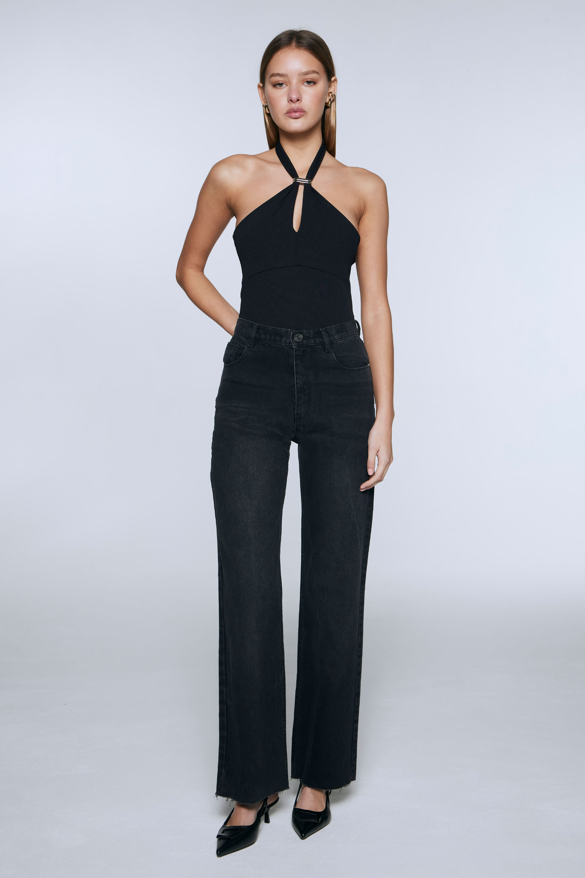 Remera de ribbb compacto de calce anatómico, con mangas largas. Escote en V con puntilla ancha a tono. Un básico para looks de día y de noche.