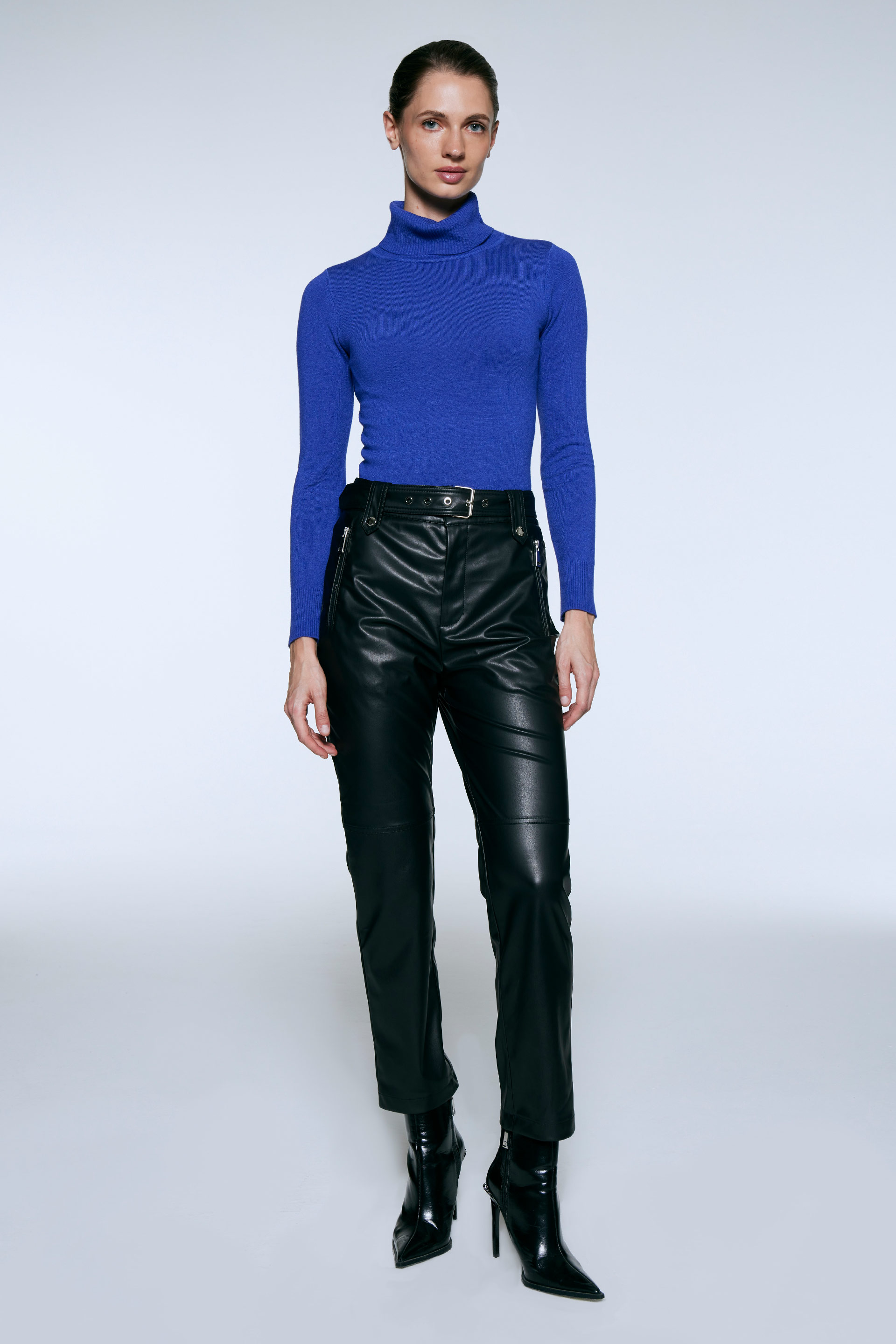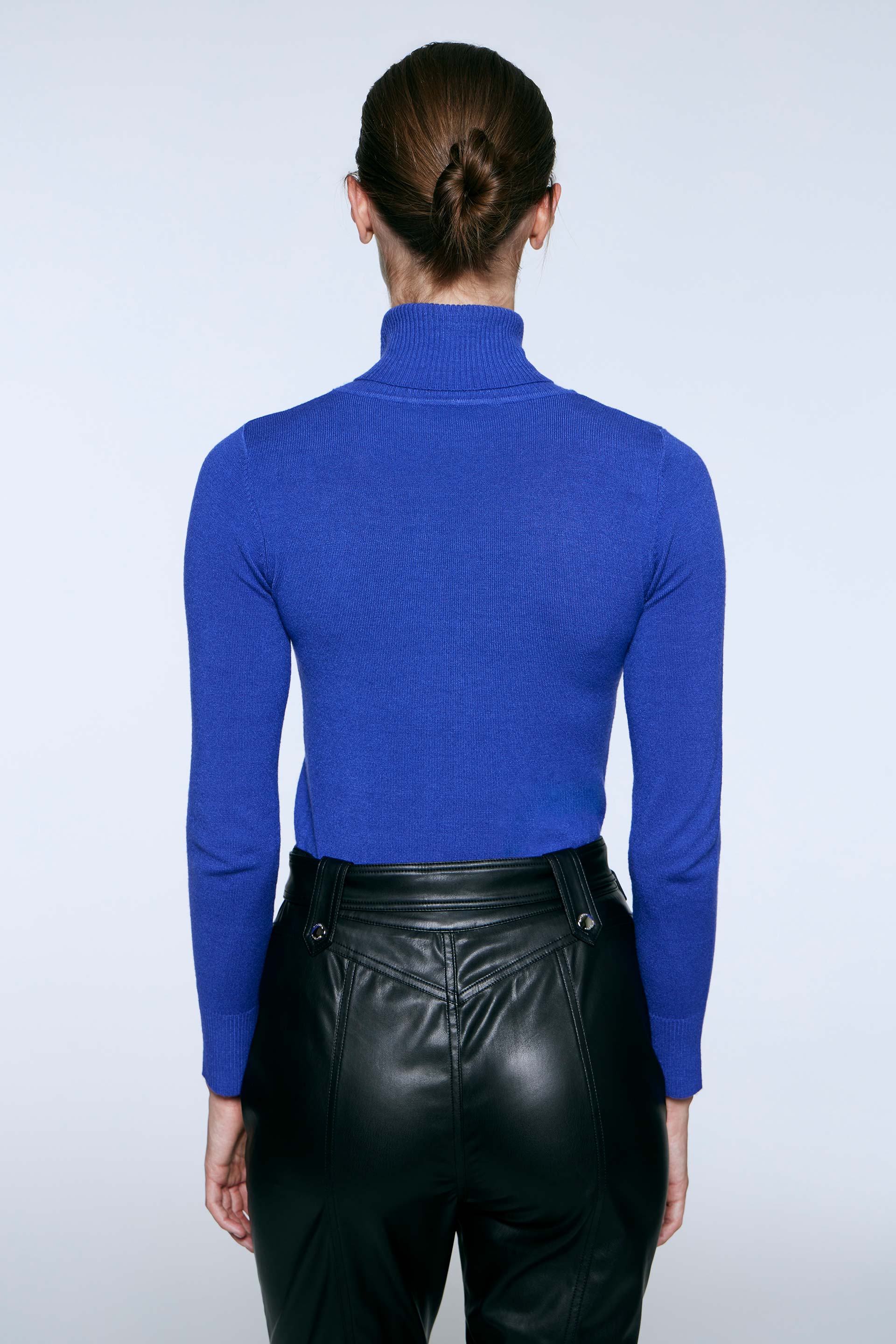 Polera tejida de calce anatómico y mangas largas. Cuello alto rebatido. El básico de invierno indispensable para completar cualquier look.