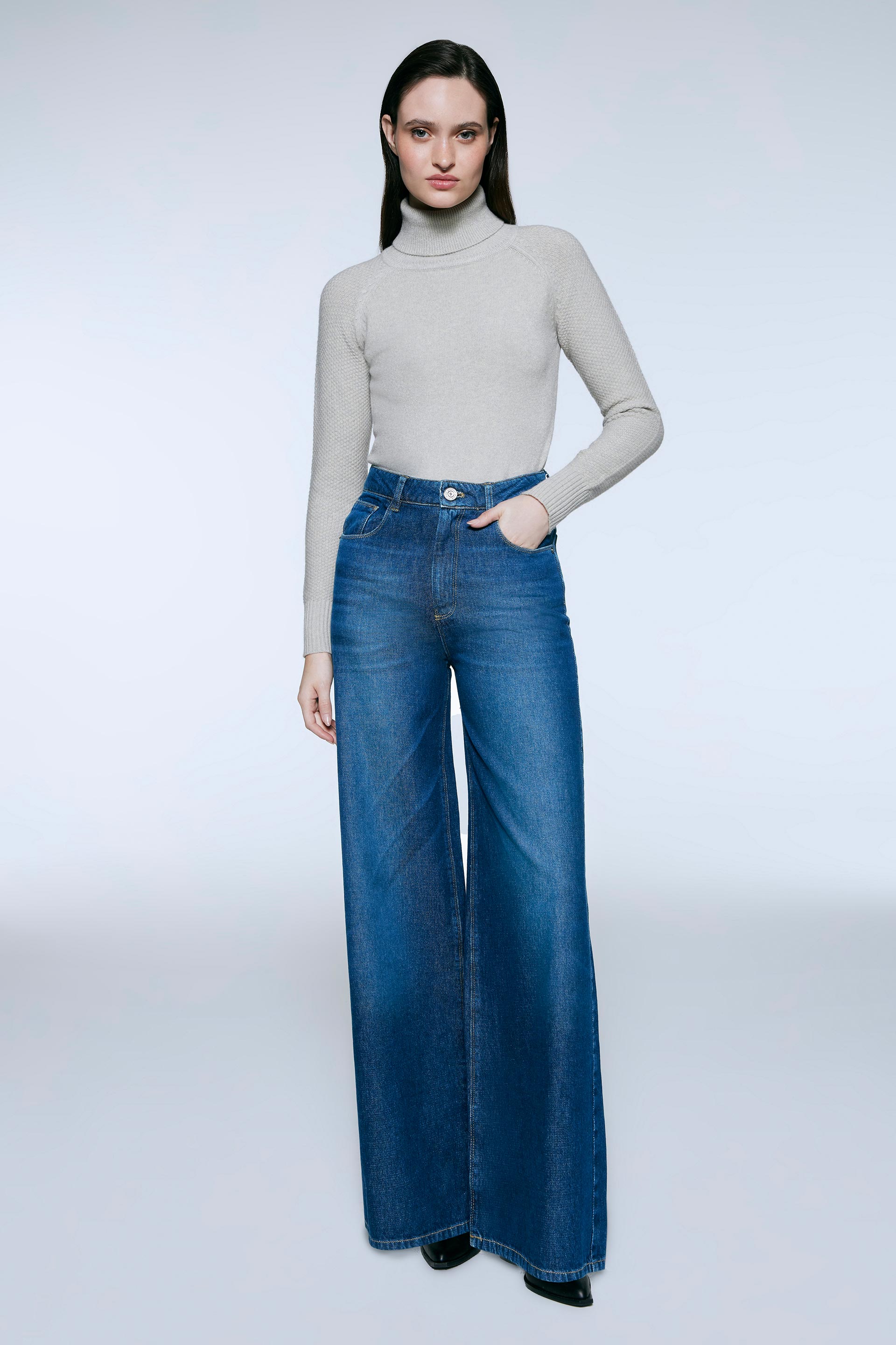 Polera tejida de calce anatómico y mangas largas. Cuello alto rebatible y mangas ranglan con textura tramada. Un básico con un toque de estilo en colores neutros para complementar tus looks.
