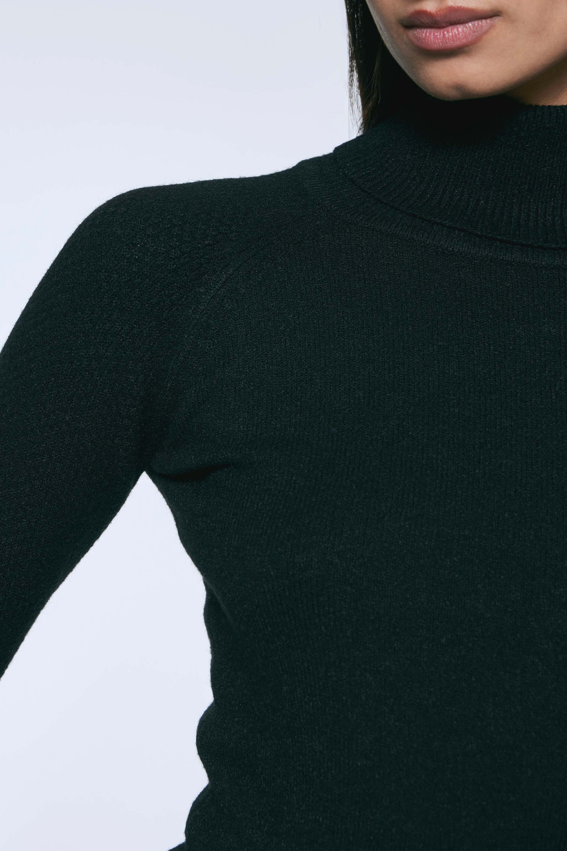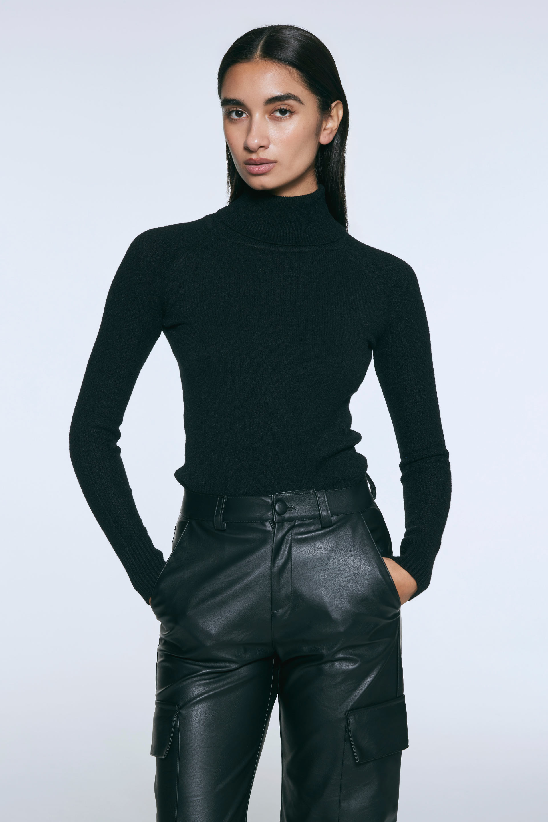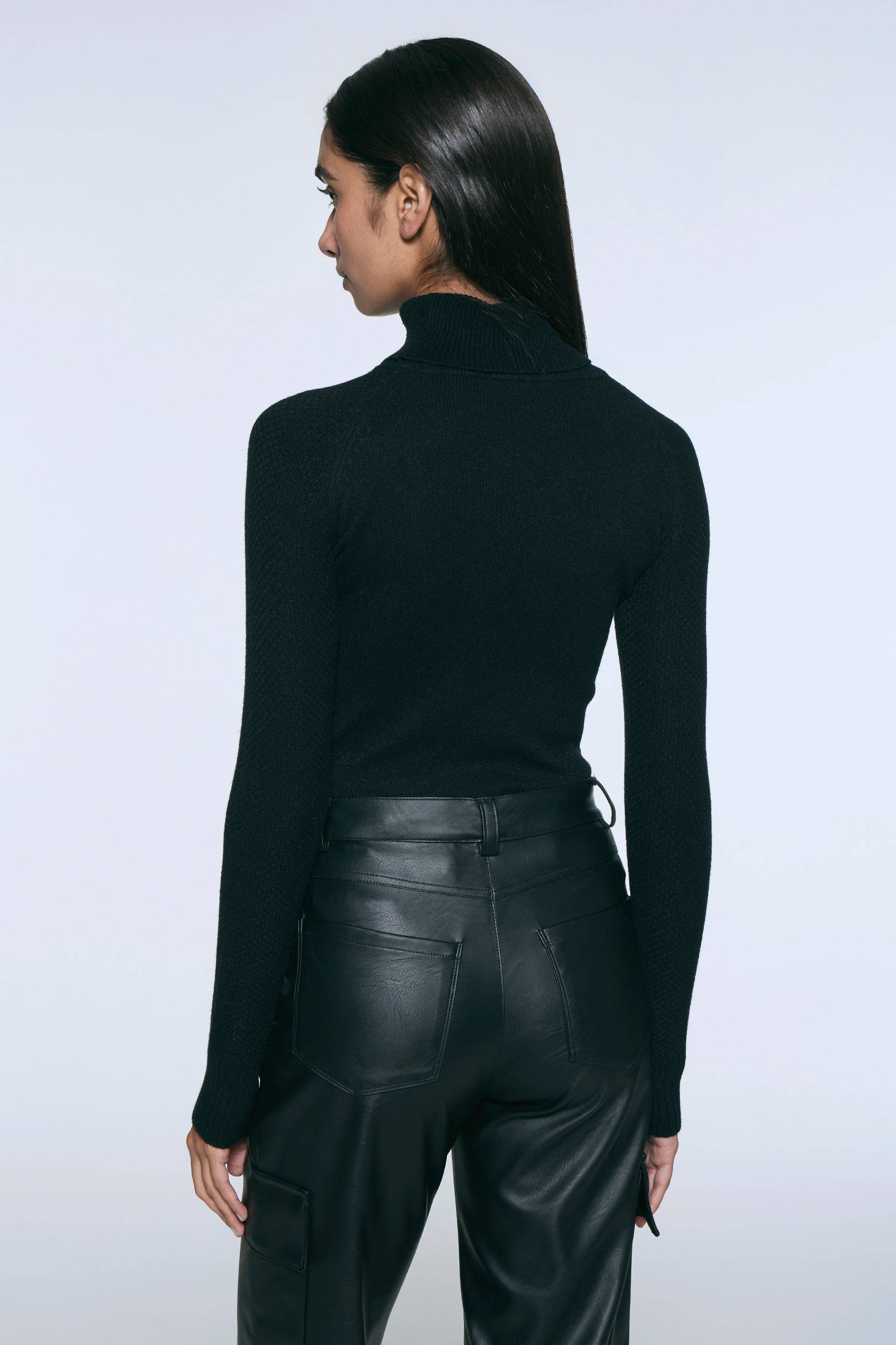 Polera tejida de calce anatómico y mangas largas. Cuello alto rebatible y mangas ranglan con textura tramada. Un básico con un toque de estilo en colores neutros para complementar tus looks.