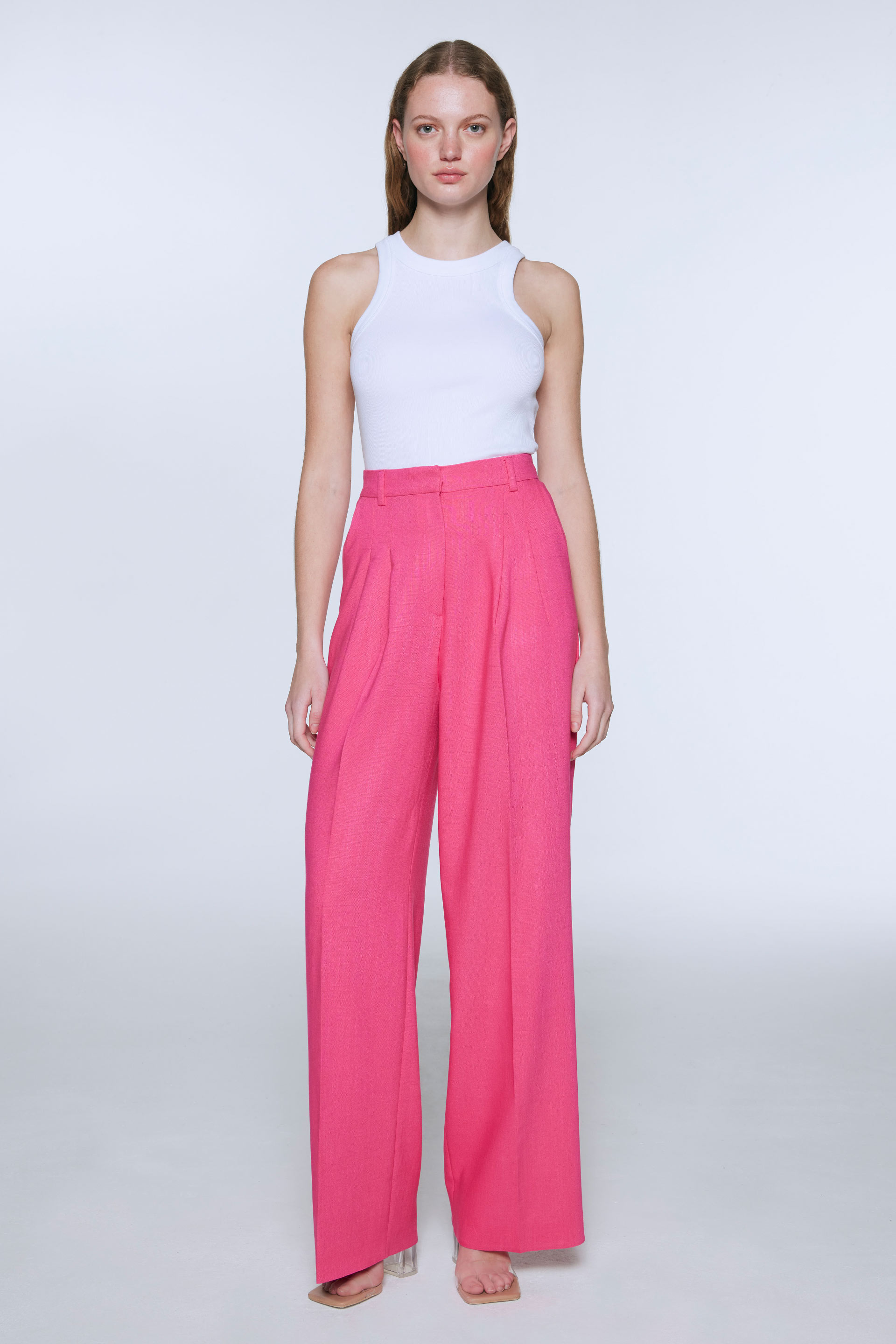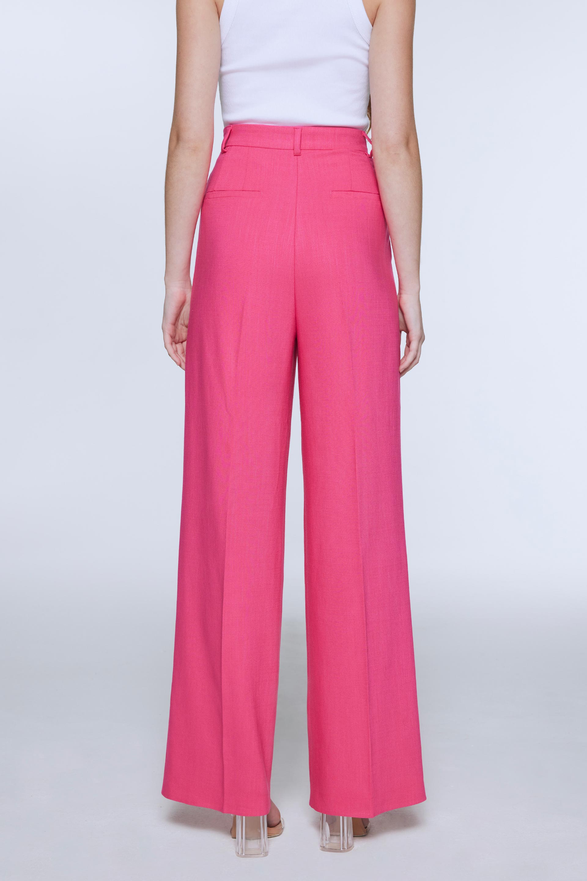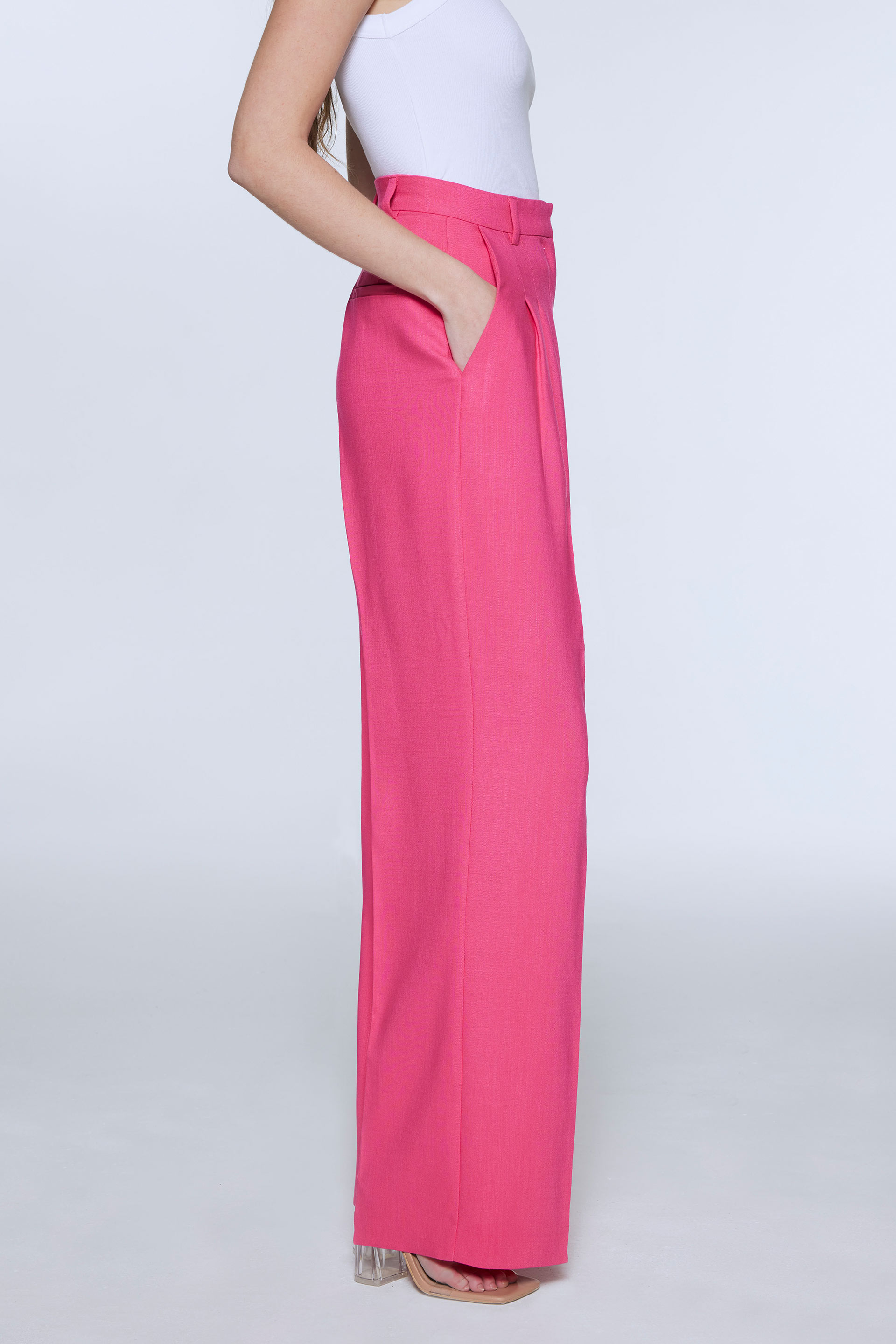 Pantalón de sastrería con viscosa, tiro alto y pierna ancha. Posee doble tabla en delantero
