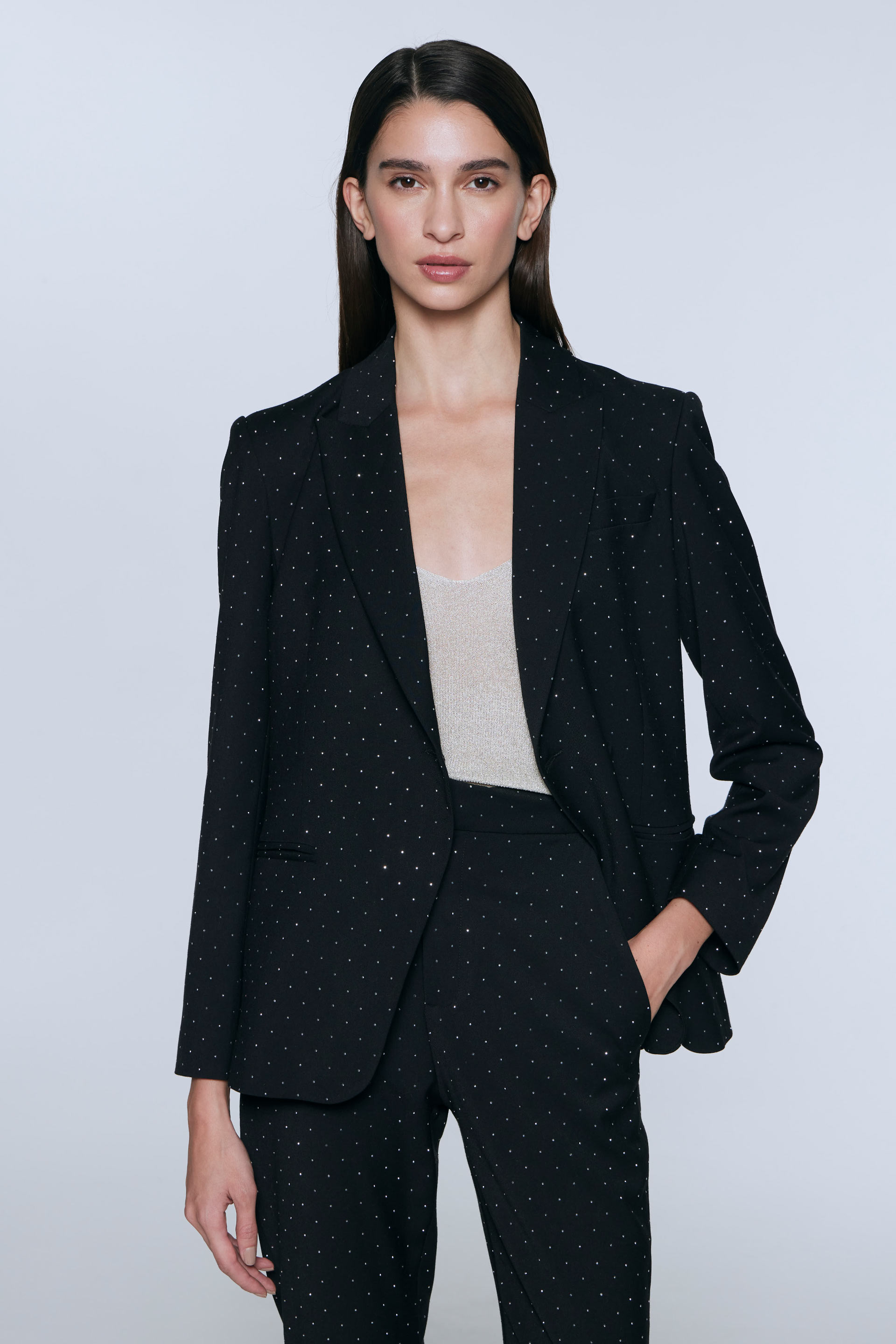 Blazer largo cruzado de sastreria viscosa con cristales termofusionados, silueta entallada y manga larga. Posee acceso con botón forrado, solapa y bolsillos con vivos. Su interior está forrado en satén elastizado generando extra confort. Combinalo con el pantalón Bagwis y armá un total look sofisticado ideal para un evento.