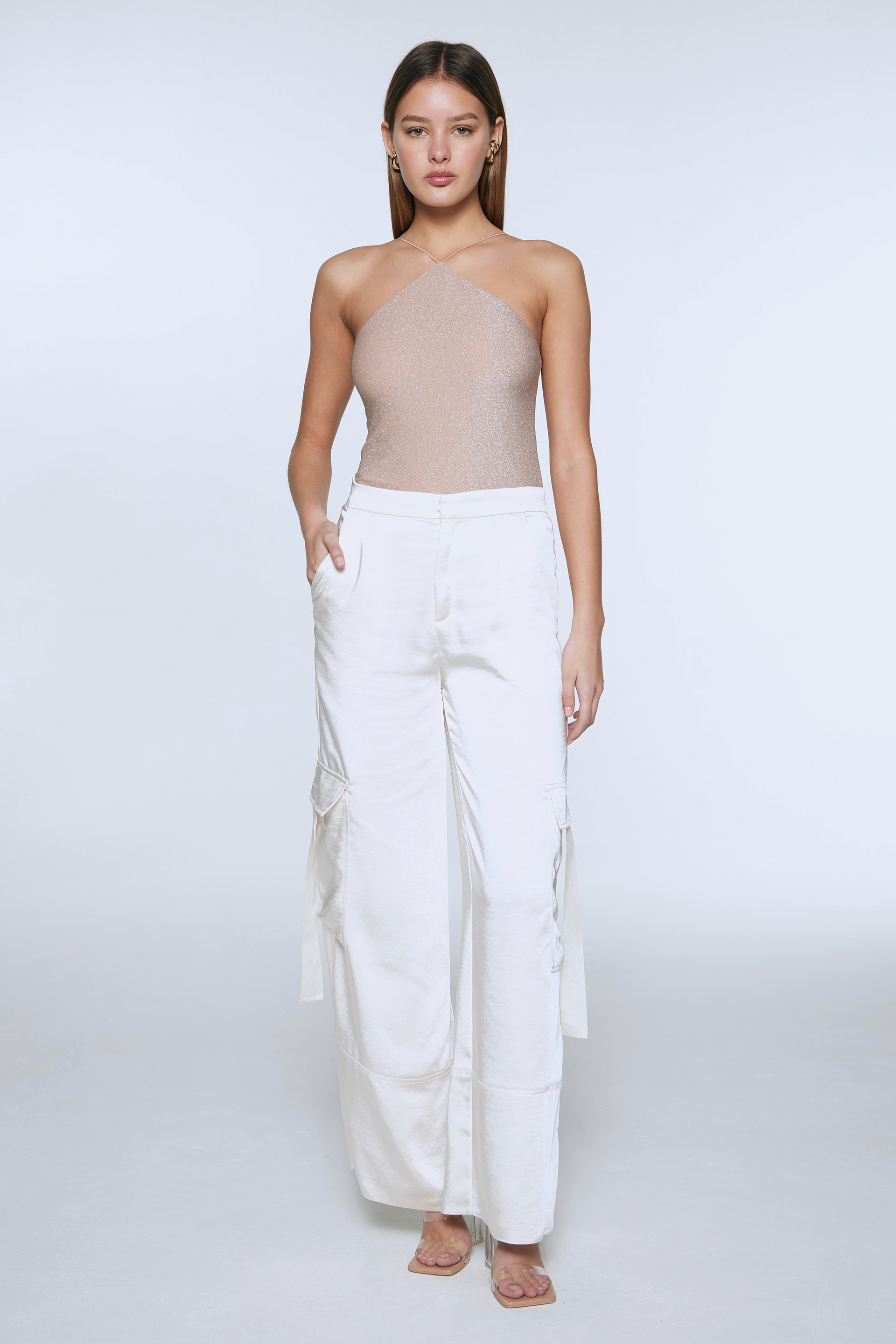 Remera de jersey lúrex, de calce anatómico. Escote halter con breteles de cordón elástico al tono. Opción perfecta para quienes buscan estar sensuales y arregladas en ocasiones especiales.