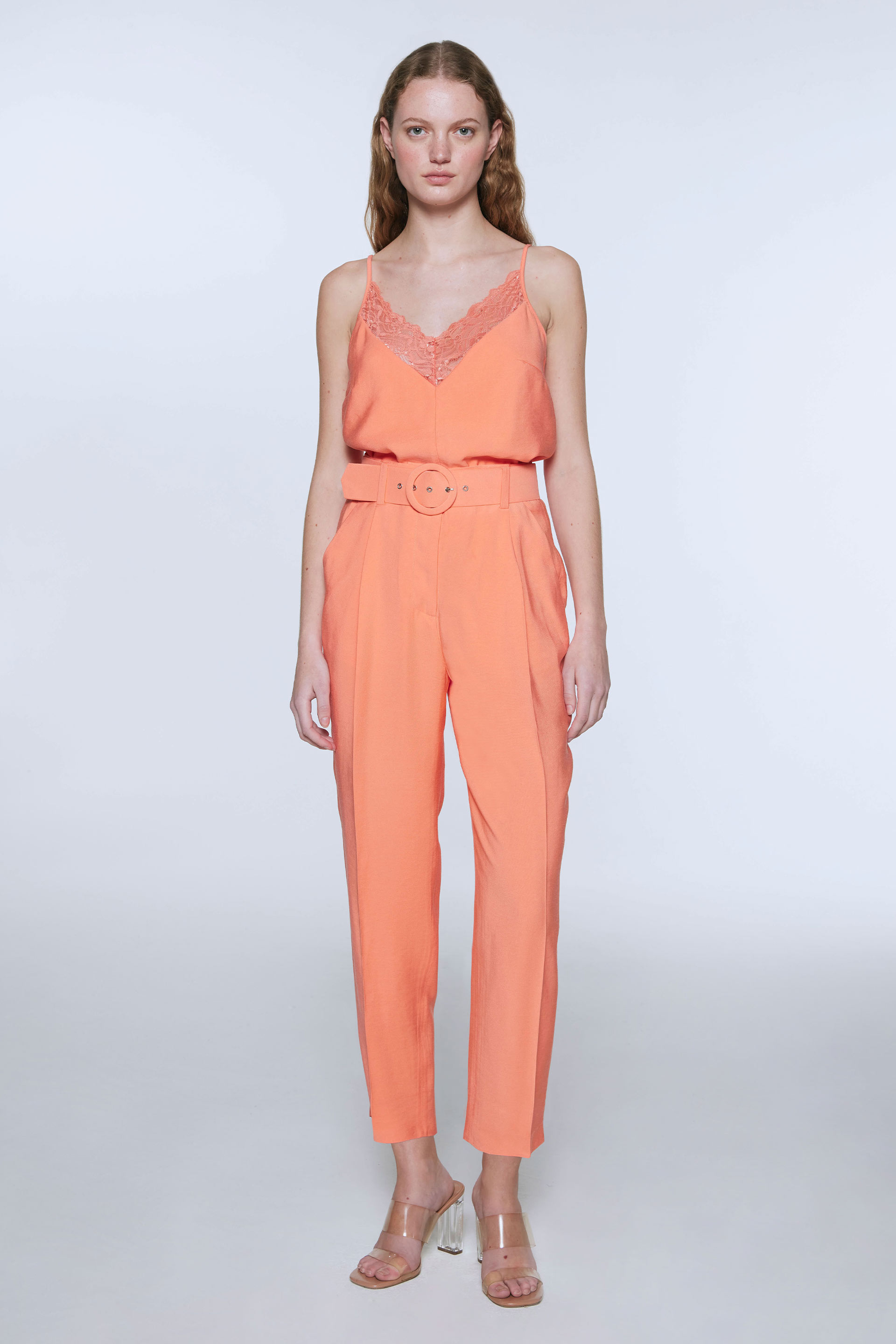 Remera tejida de punto con combinación de encaje a tono en canesú delantero y espalda. De calce anatómico, posee escote en V y hombro caído. Perfecta para la oficina o una salida de noche.