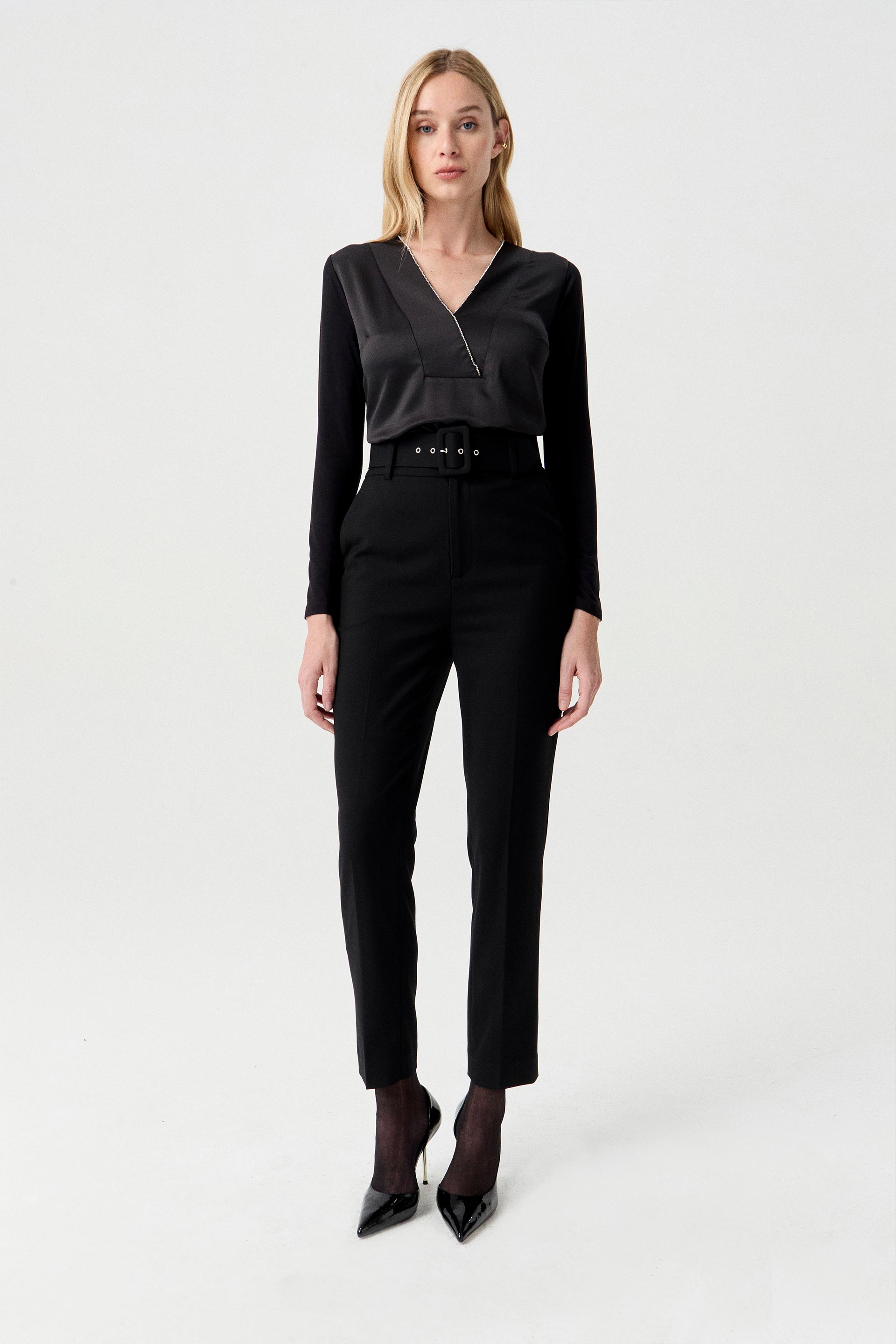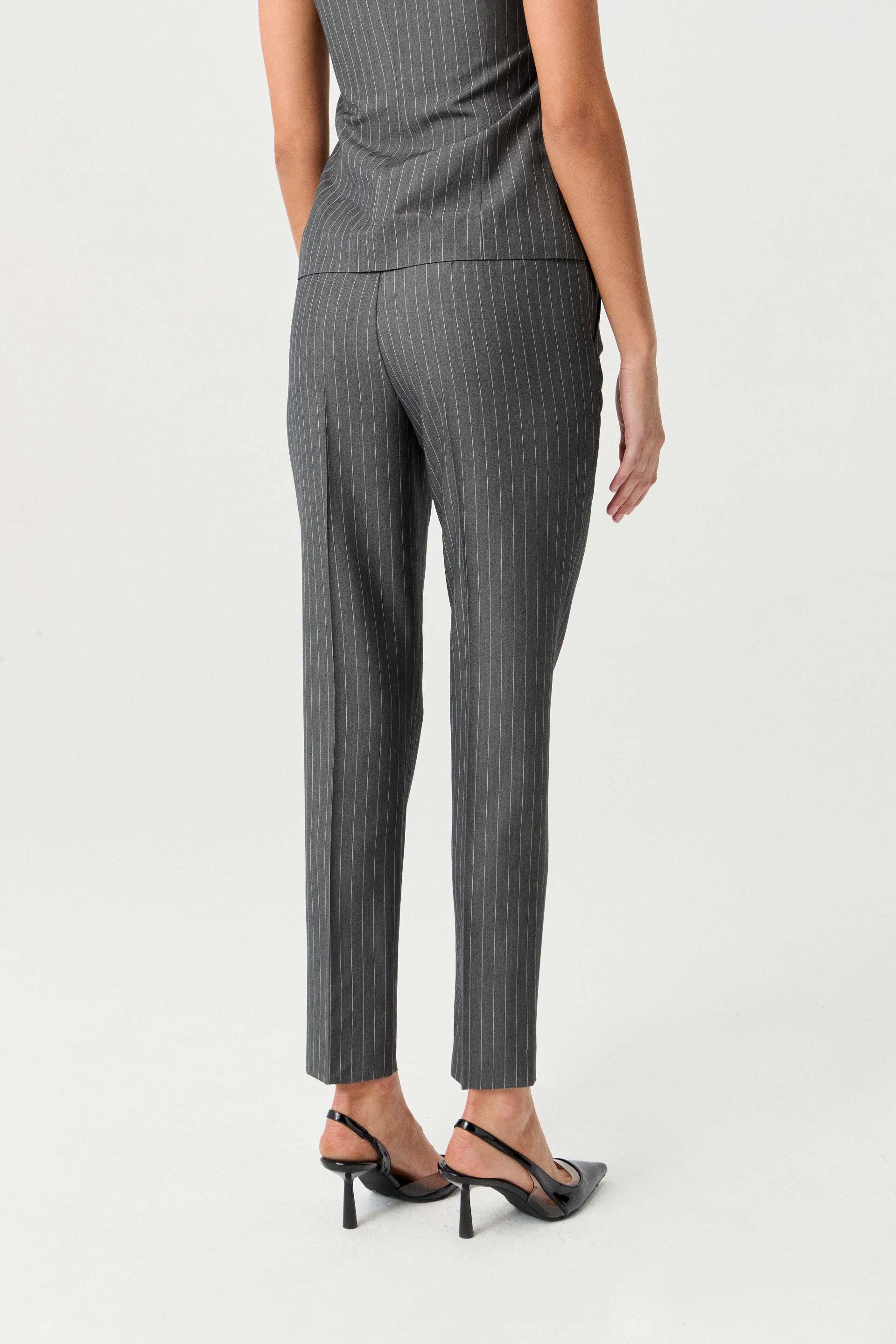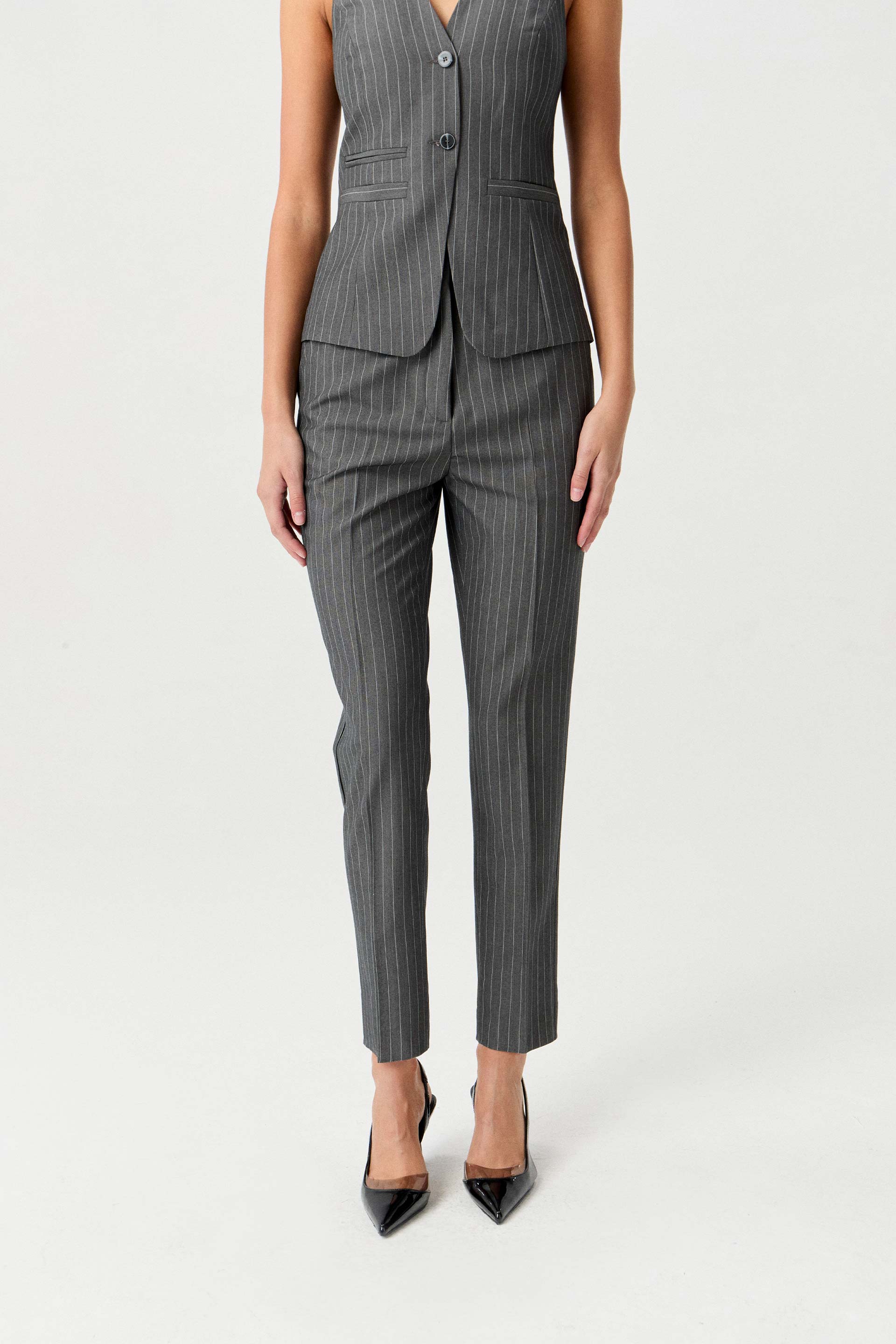 Pantalón de sastrería tizada, de tiro alto y pierna slim. Posee acceso central y bolsillos diagonales. Su género tizado y su diseño lo transforman en un pantalón clásico y moderno, ideal para componer un look elegante. Combinalo con el chaleco Ennis y armá un total look.