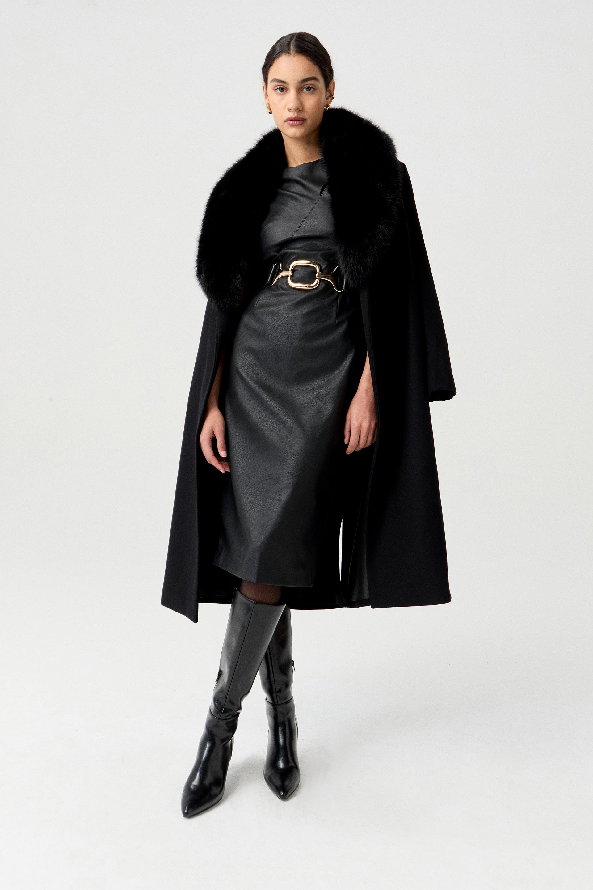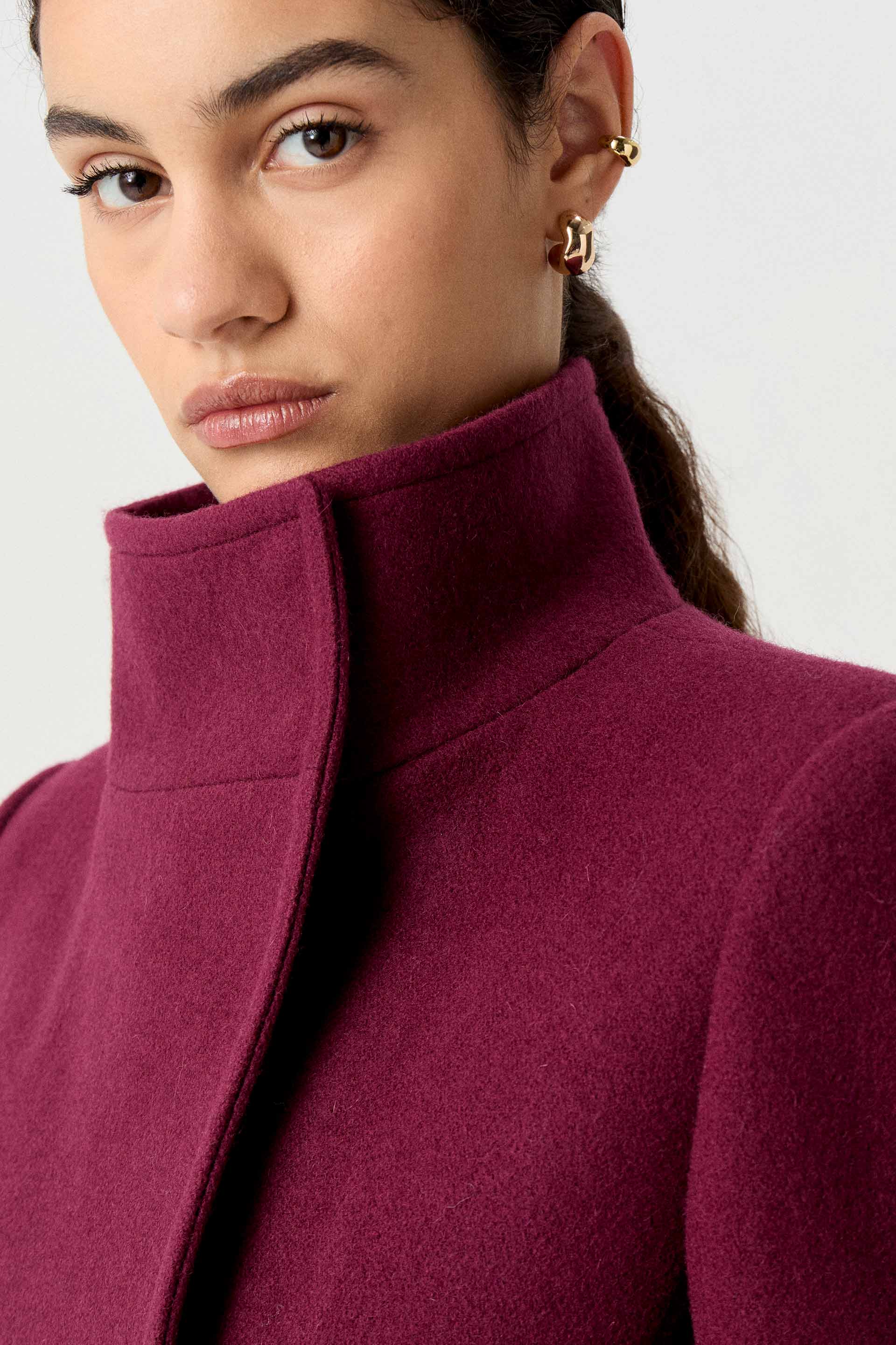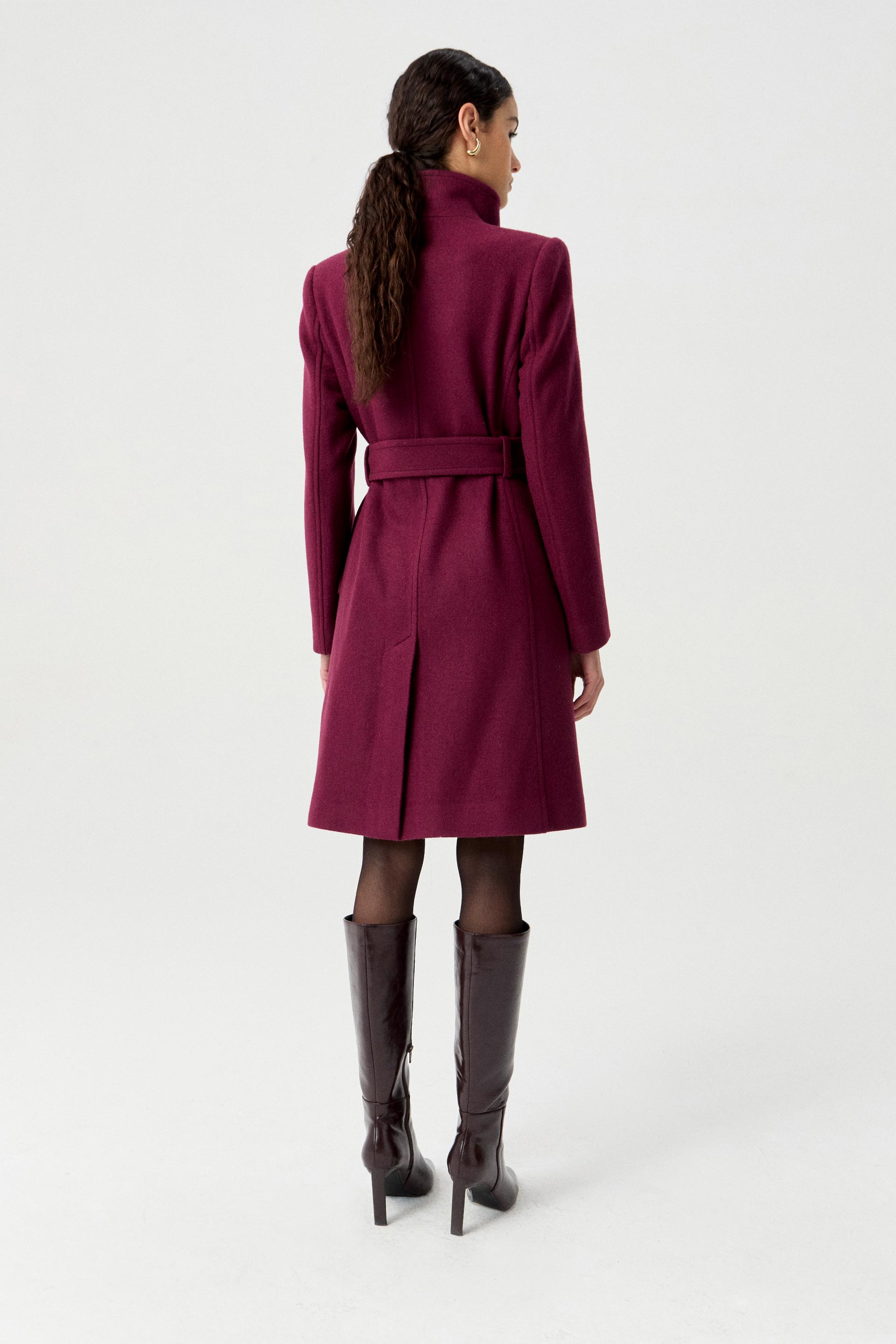 Tapado de paño de lana premium, de silueta entallada, cuello alto y manga larga. Posee detalle de botón metálico en acceso, lazo en cintura con dos medialunas como pasador para un mayor entalle y broches internos en cuello. Un tapado elegante, fácil de combinar y con un largo modular intermedio que lo convierte en un ítem moderno.