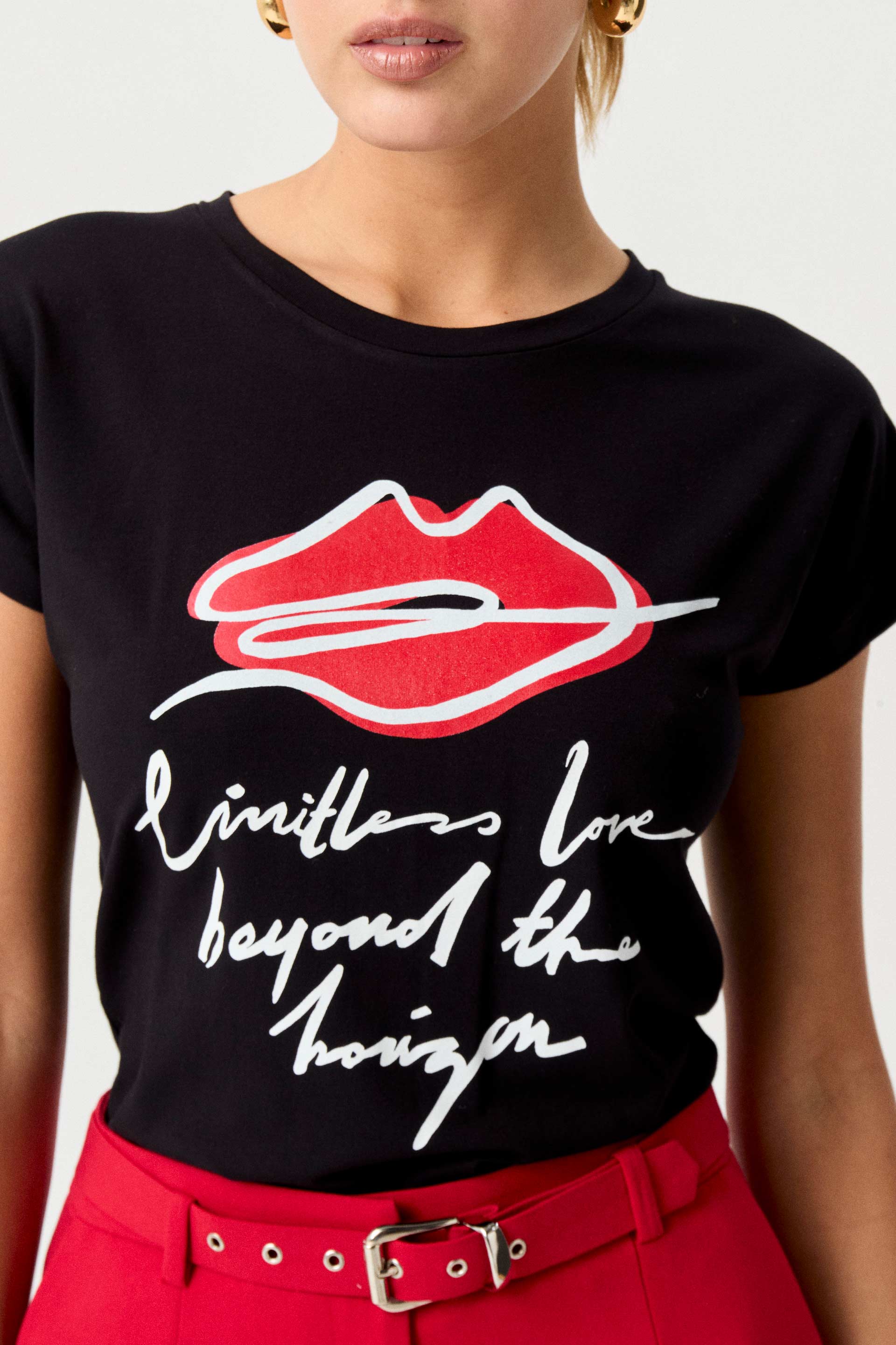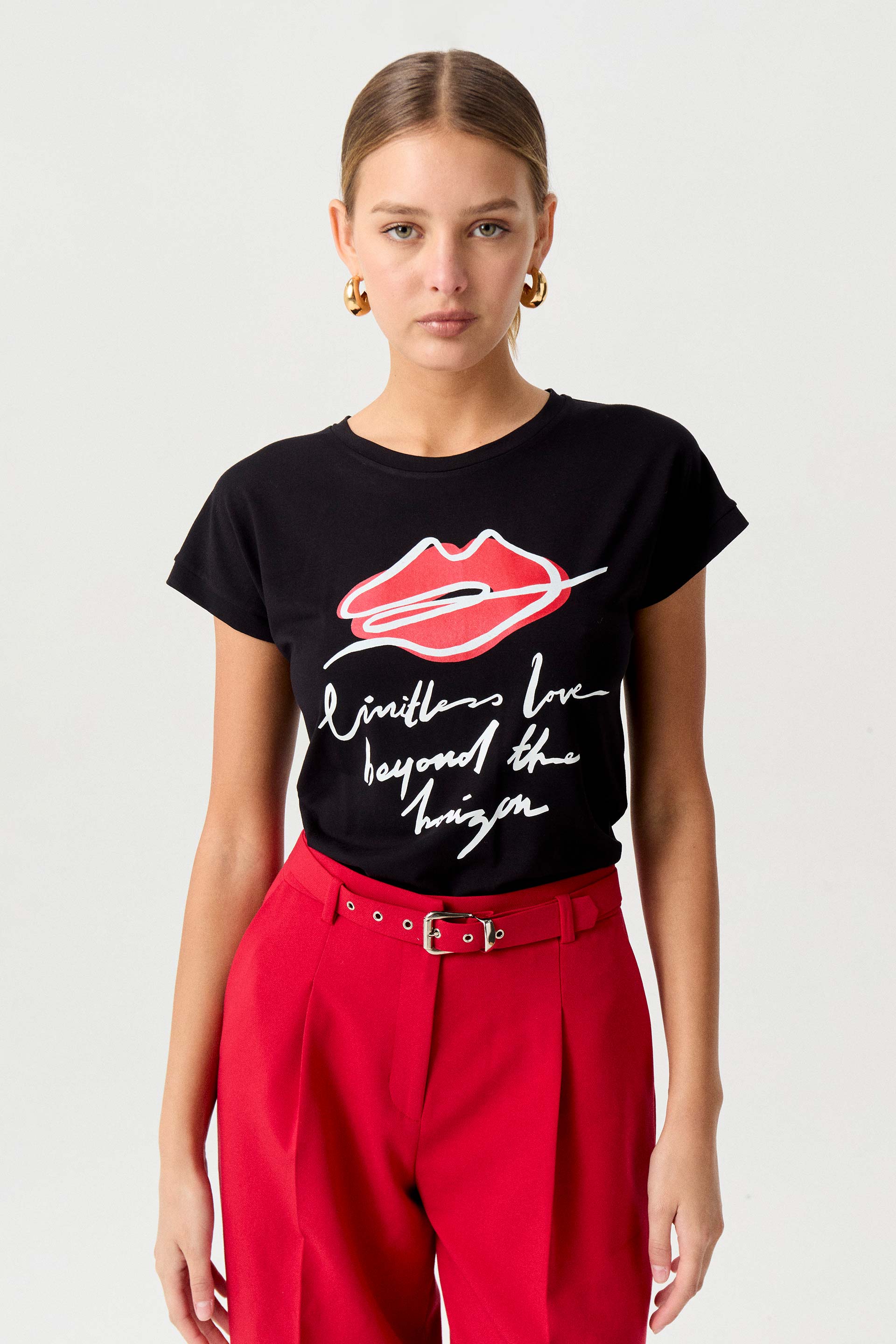 Remera de viscosa elastizada premium, de calce relajado. Escote redondo a la base, hombro caído y estampa central. Agregá un toque moderno y descontracturado a cualquier look con esta remera.