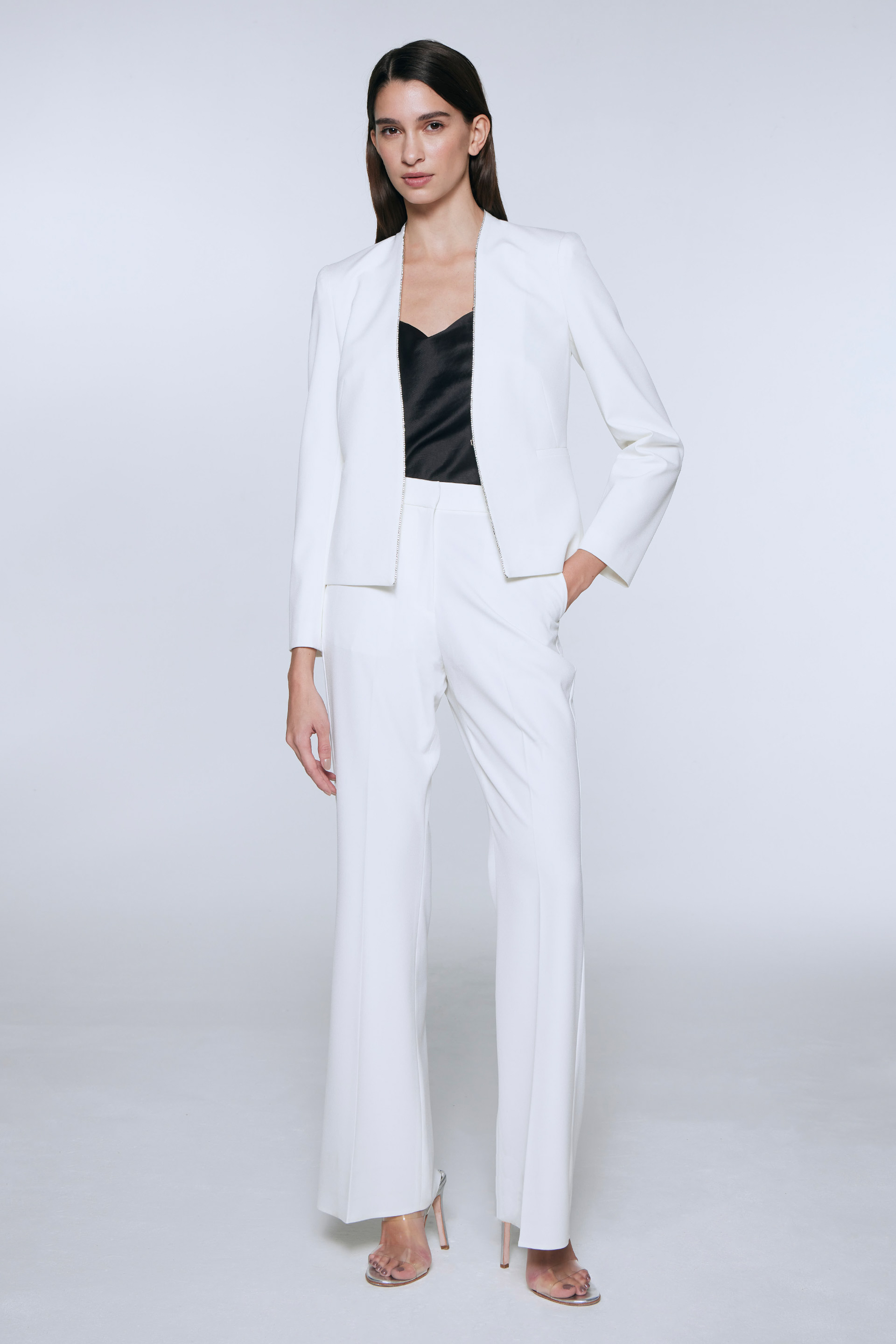 La modelo tiene contorno de busto 86 y usa talle S.