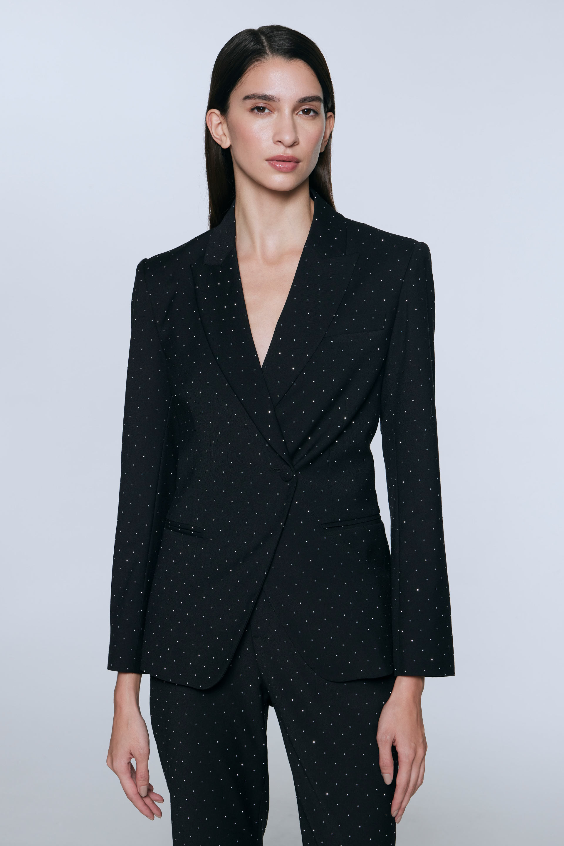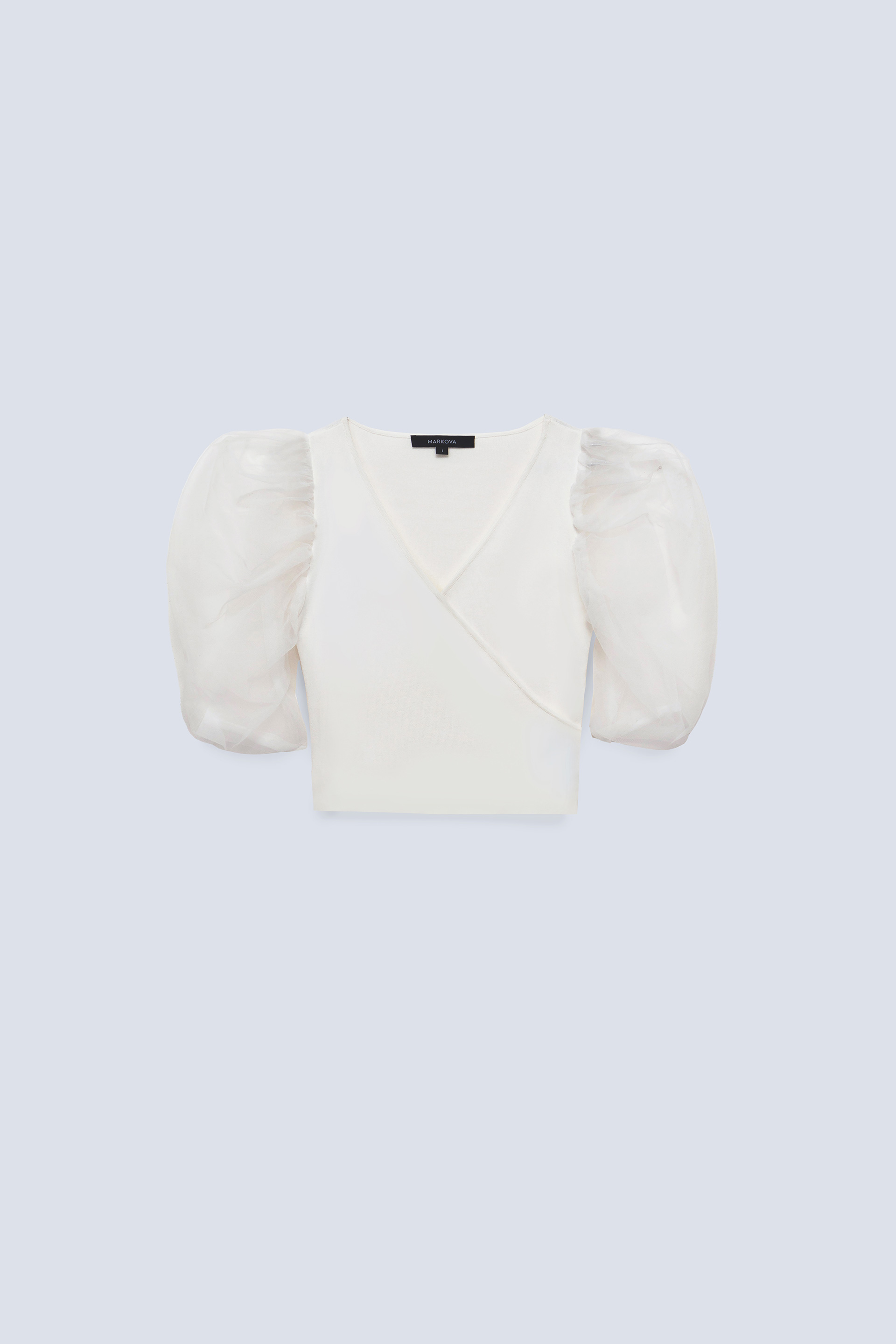La modelo tiene contorno de busto 86 y usa talle 1.