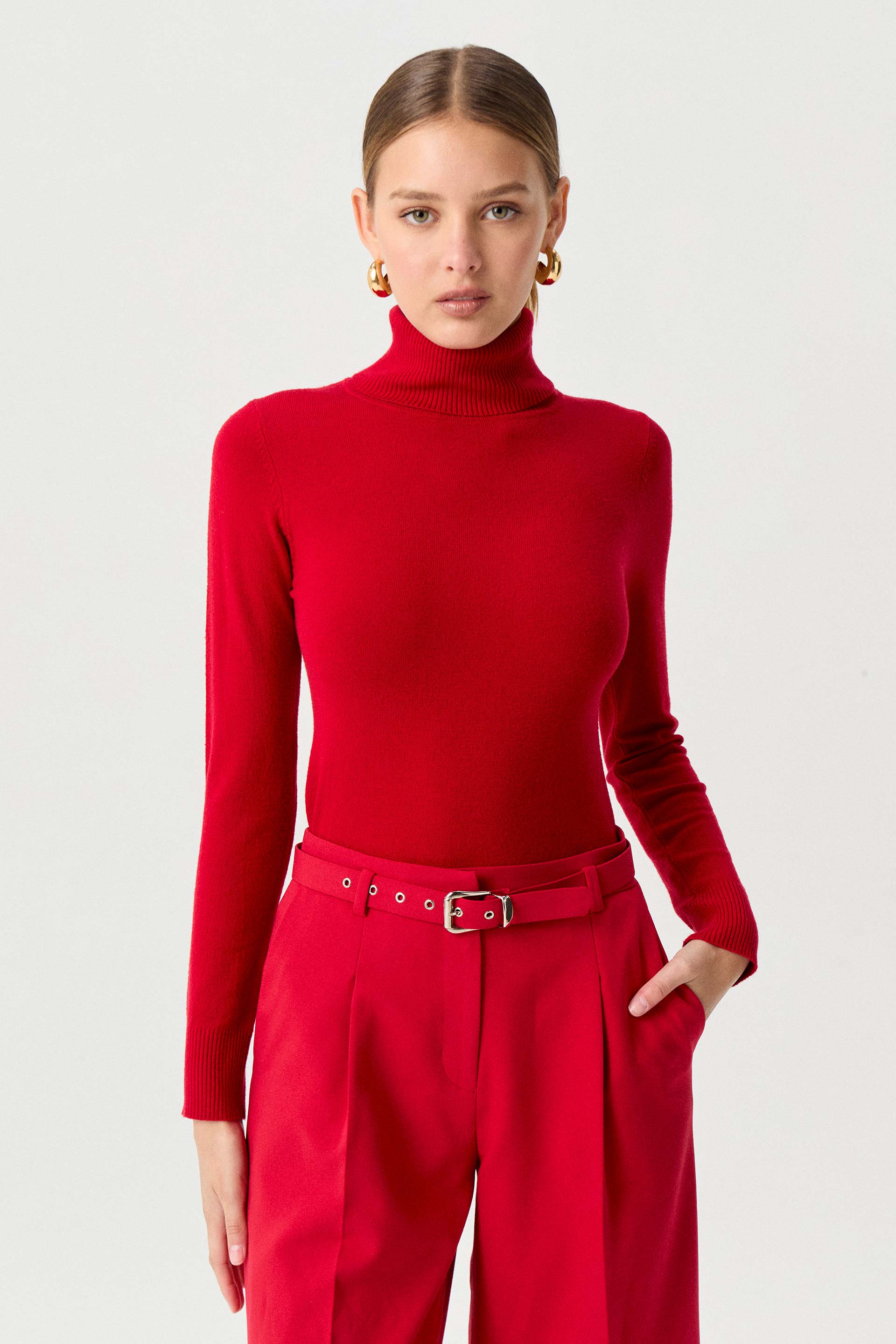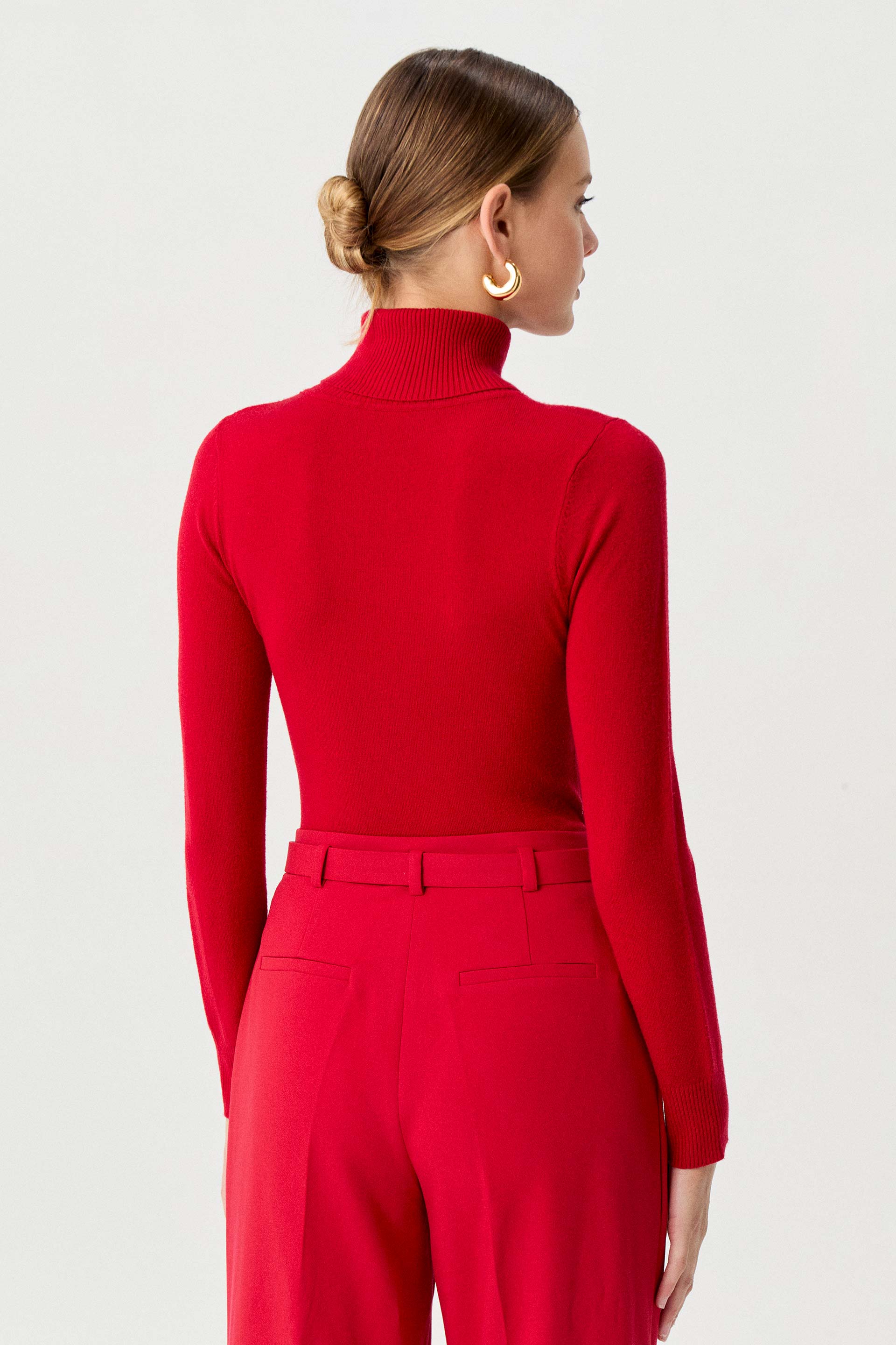Polera tejida de calce anatómico y mangas largas. Cuello alto rebatido. El básico de invierno indispensable para completar cualquier look.