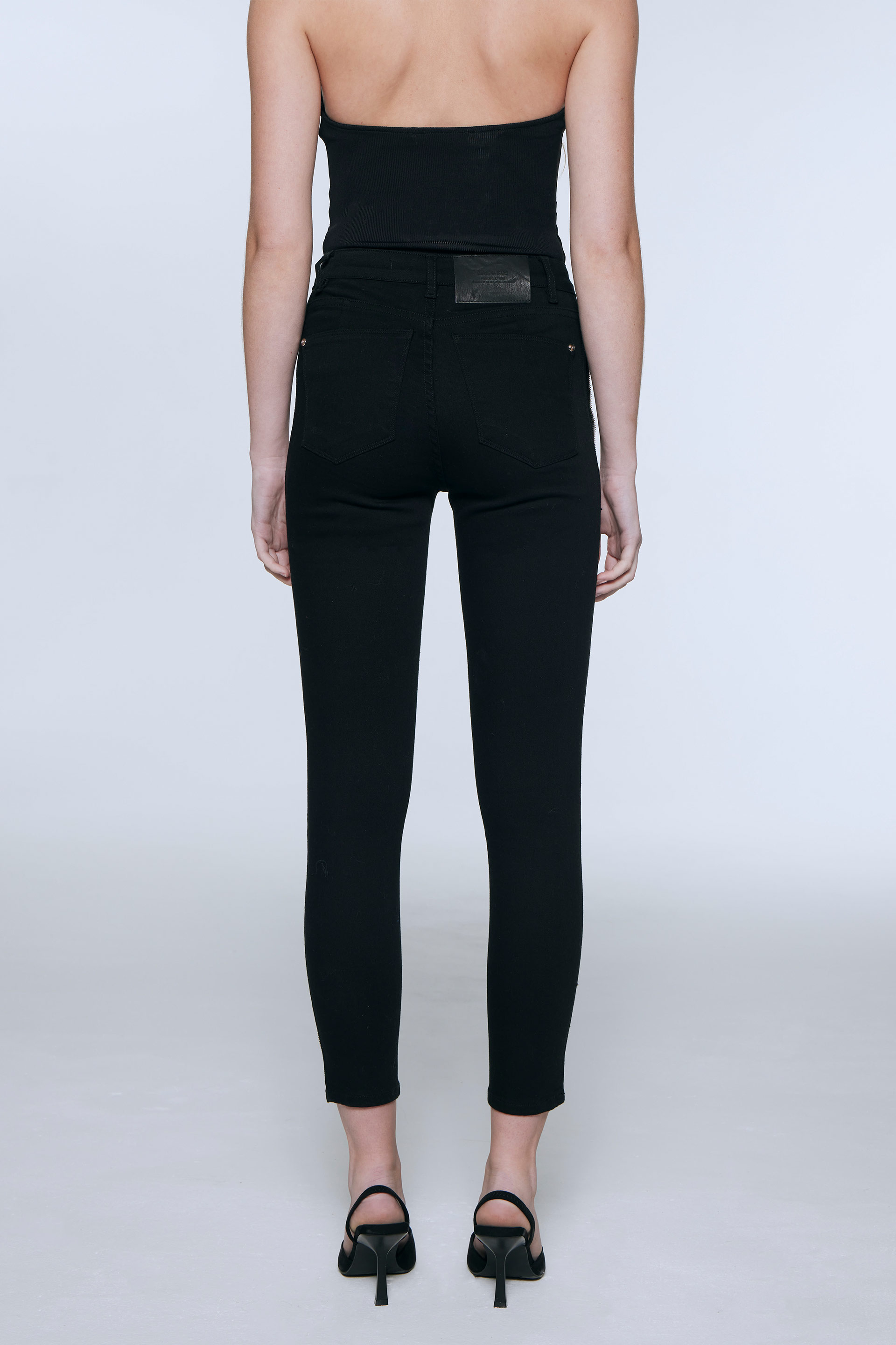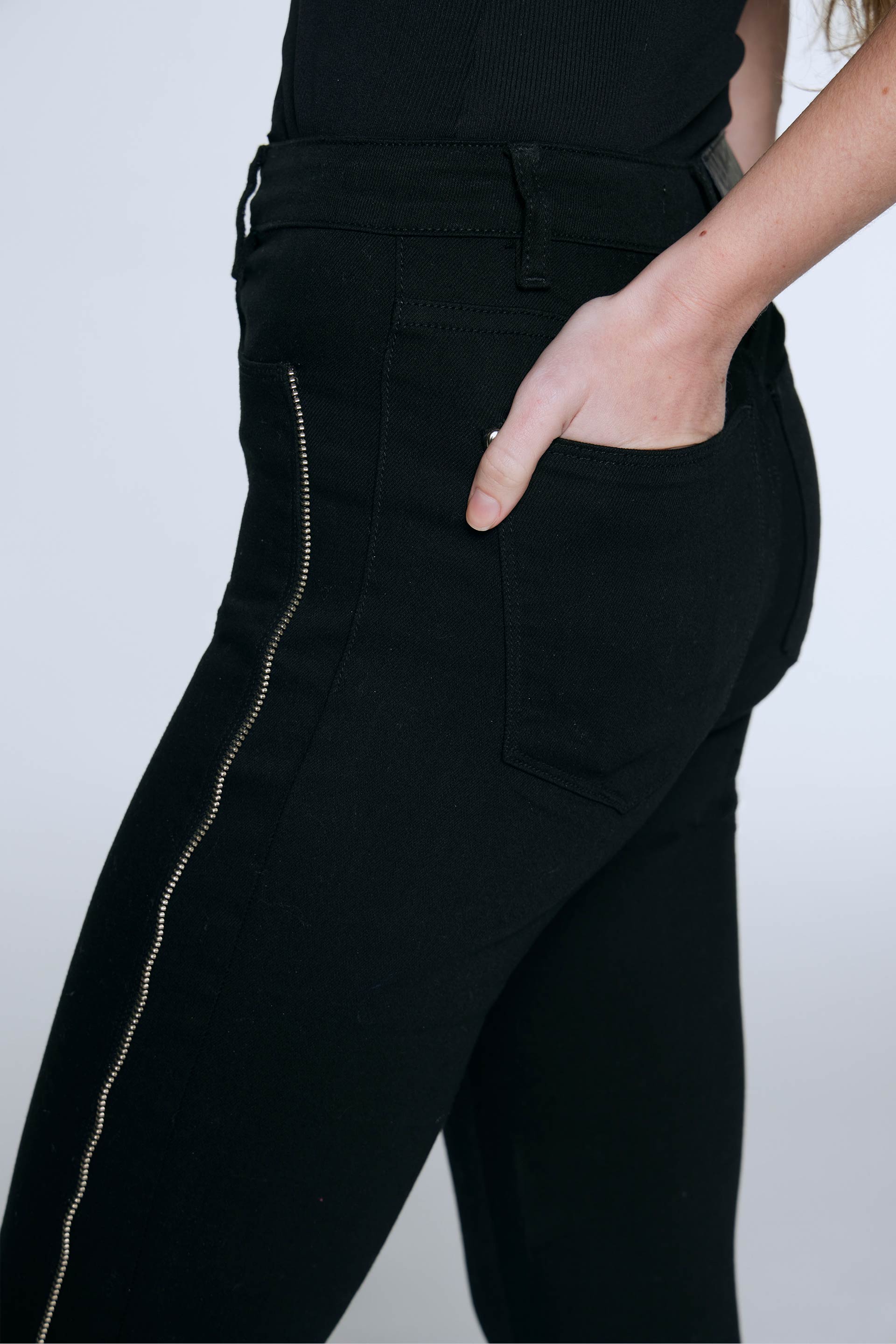 Jean elastizado tiro alto con pierna ultraslim, calce al cuerpo con diseño 5 bolsillos. Posee badana, botón y remaches metálicos personalizados con logo MKV. Su detalle de recortes con vivo de cierre en el delantero y su lavado pre-wash conservando su color pleno lo convierten en un jean clásico con un twist rockero ideal para armar looks tanto de día como de noche.