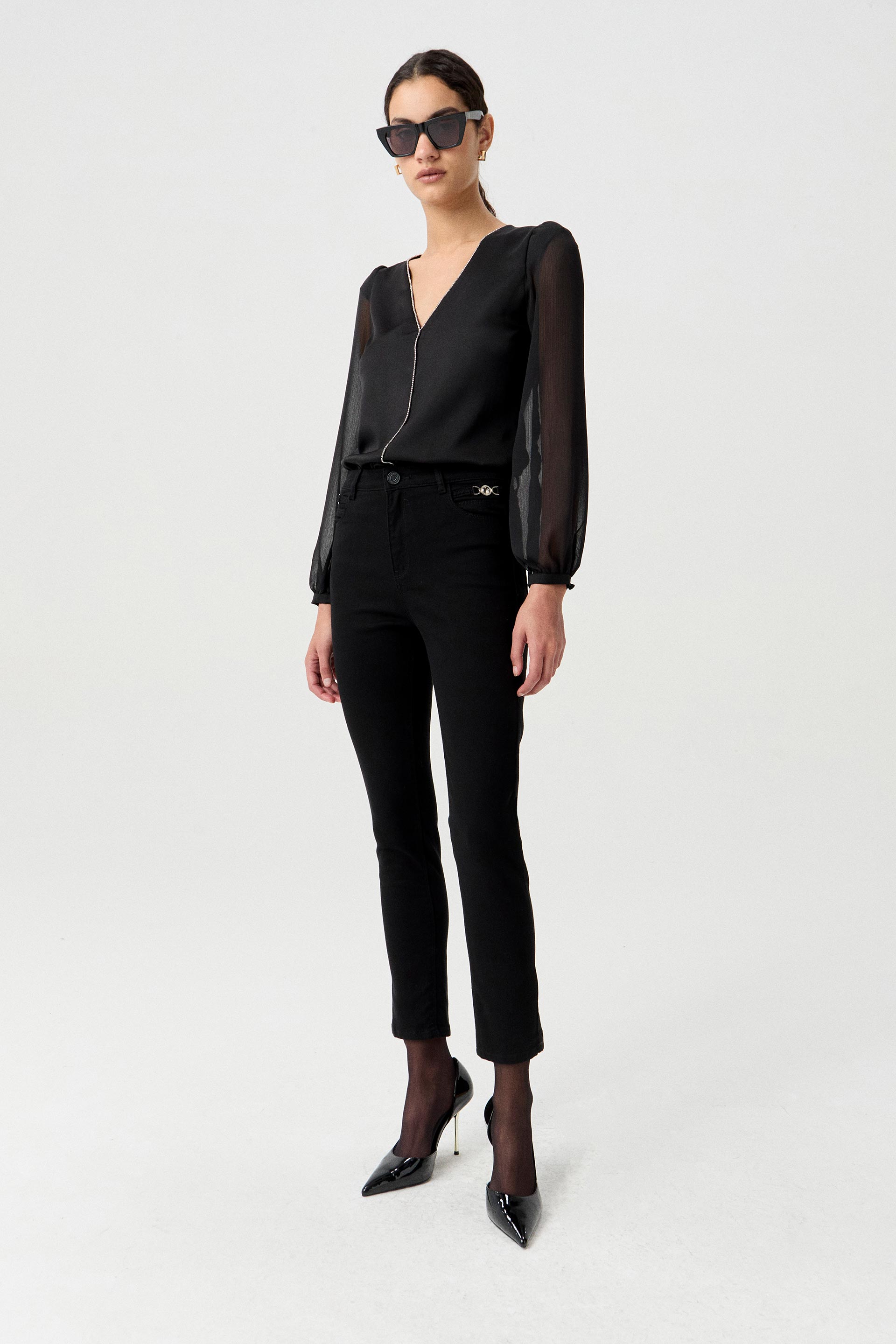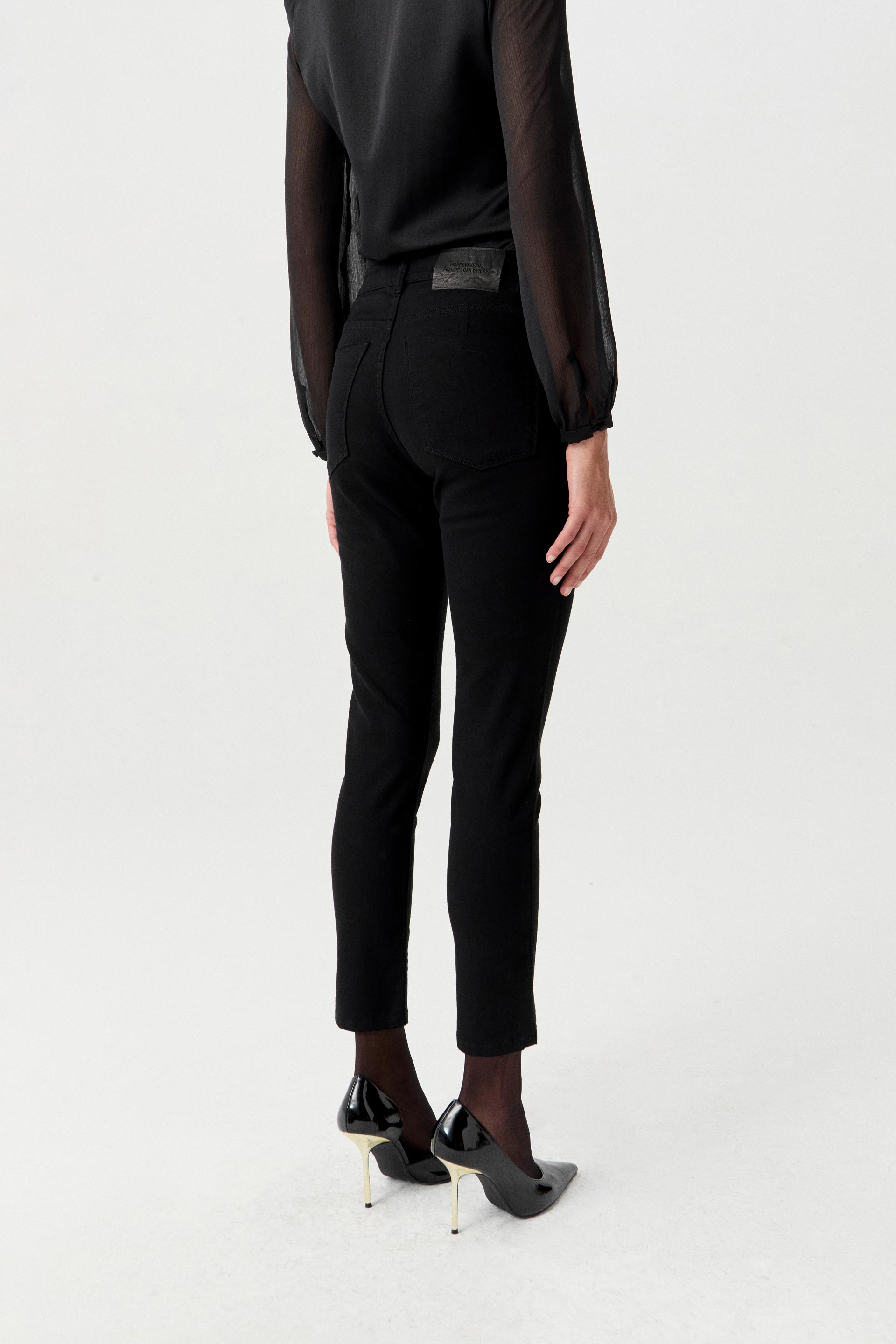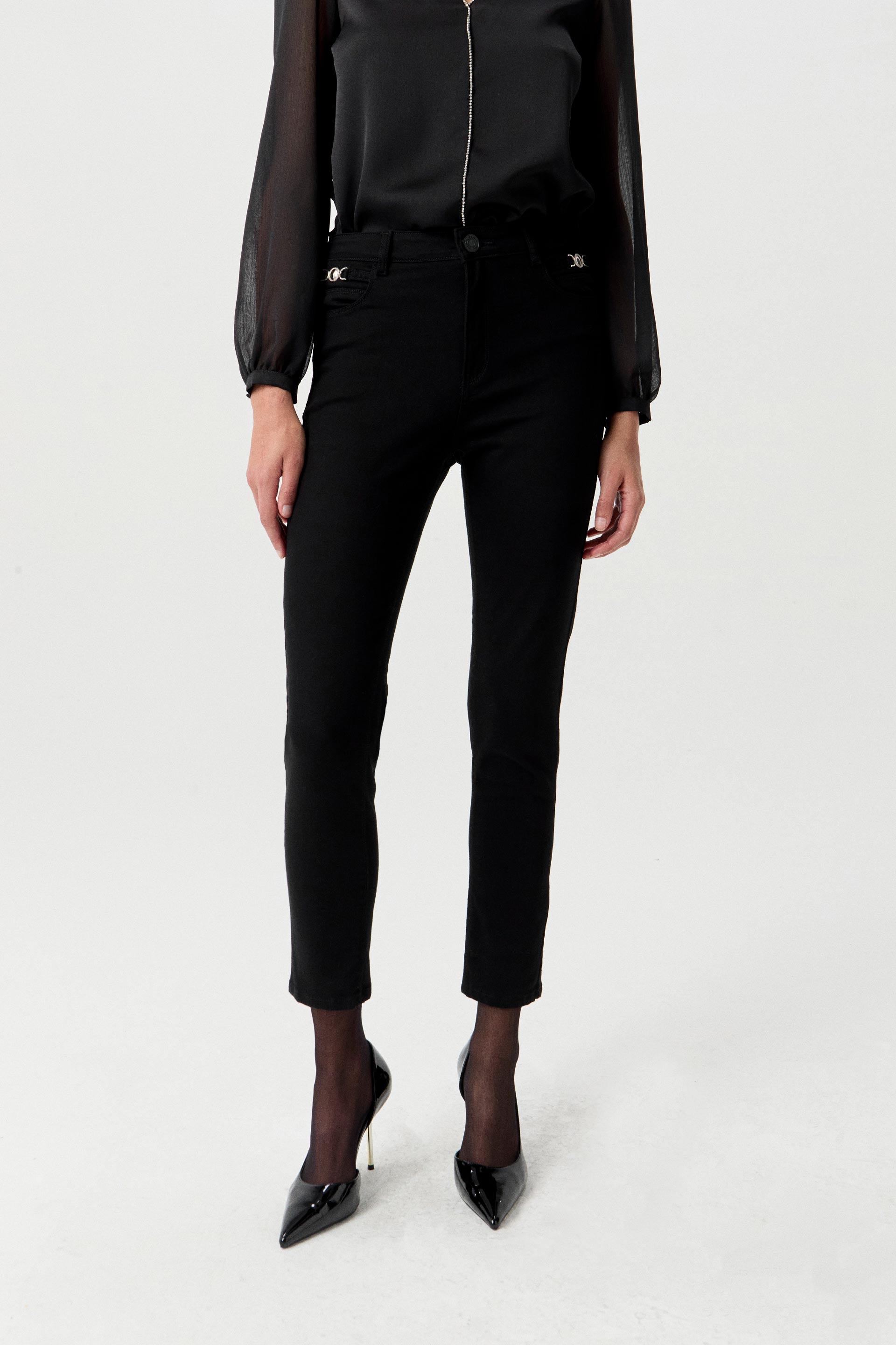 Jean elastizado tiro alto con pierna ultraslim y calce al cuerpo. Posee badana y botón personalizados MKV. Se le aplicó un lavado pre-wash que lo hace más suave al tacto, conservando su color pleno. Además, lleva apliques metálicos en los bolsillos delanteros. Ideal para elevar un look de oficina o de noche.