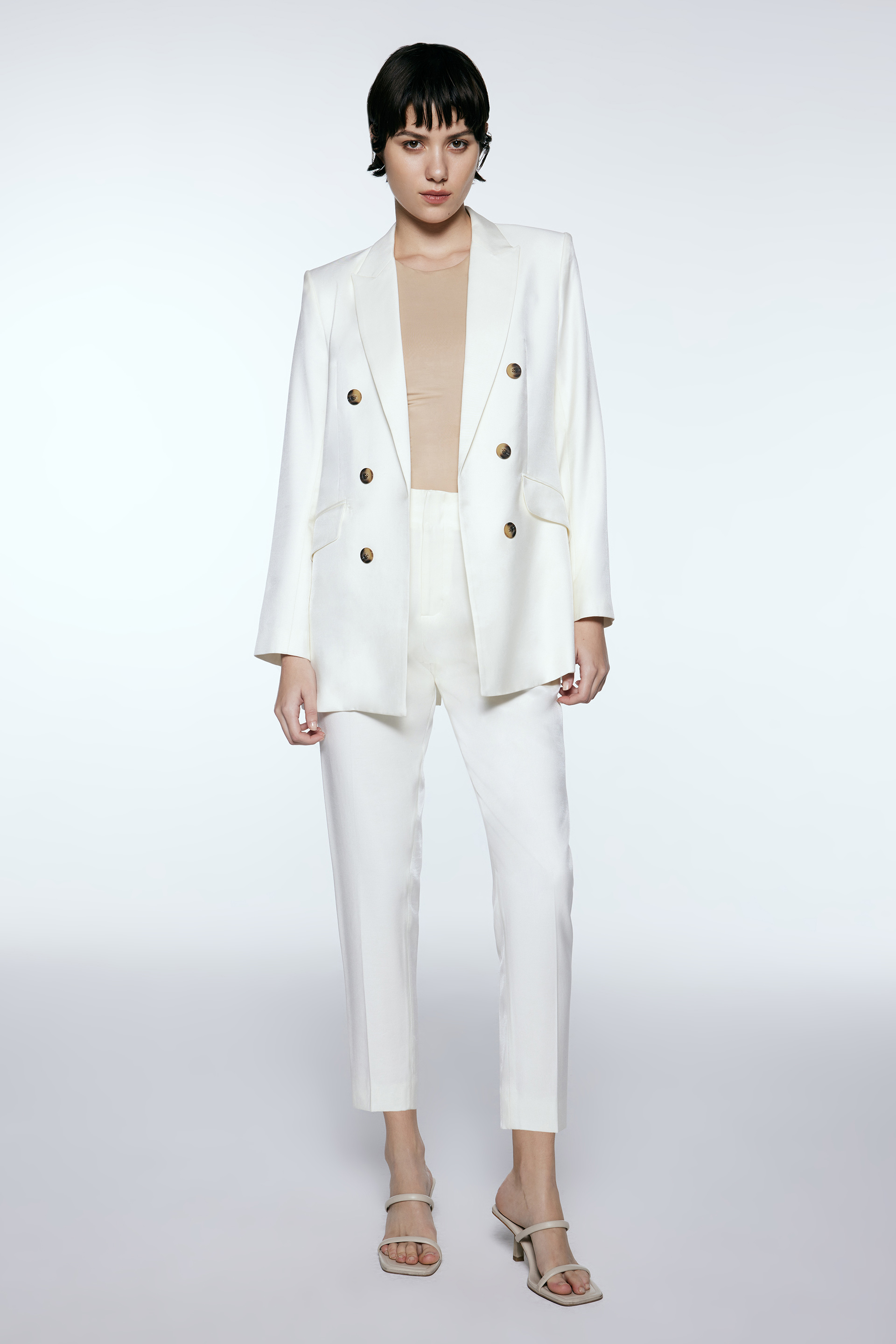 Blazer largo de sastrería rayón premium. De silueta relajada y manga larga, su interior está forrado en satén jacquard elastizado generando extra confort. Posee cuello con solapa, bolsillos con tapa y botones veteados. Combinalo con el pantalón Topacio para armar un total look.